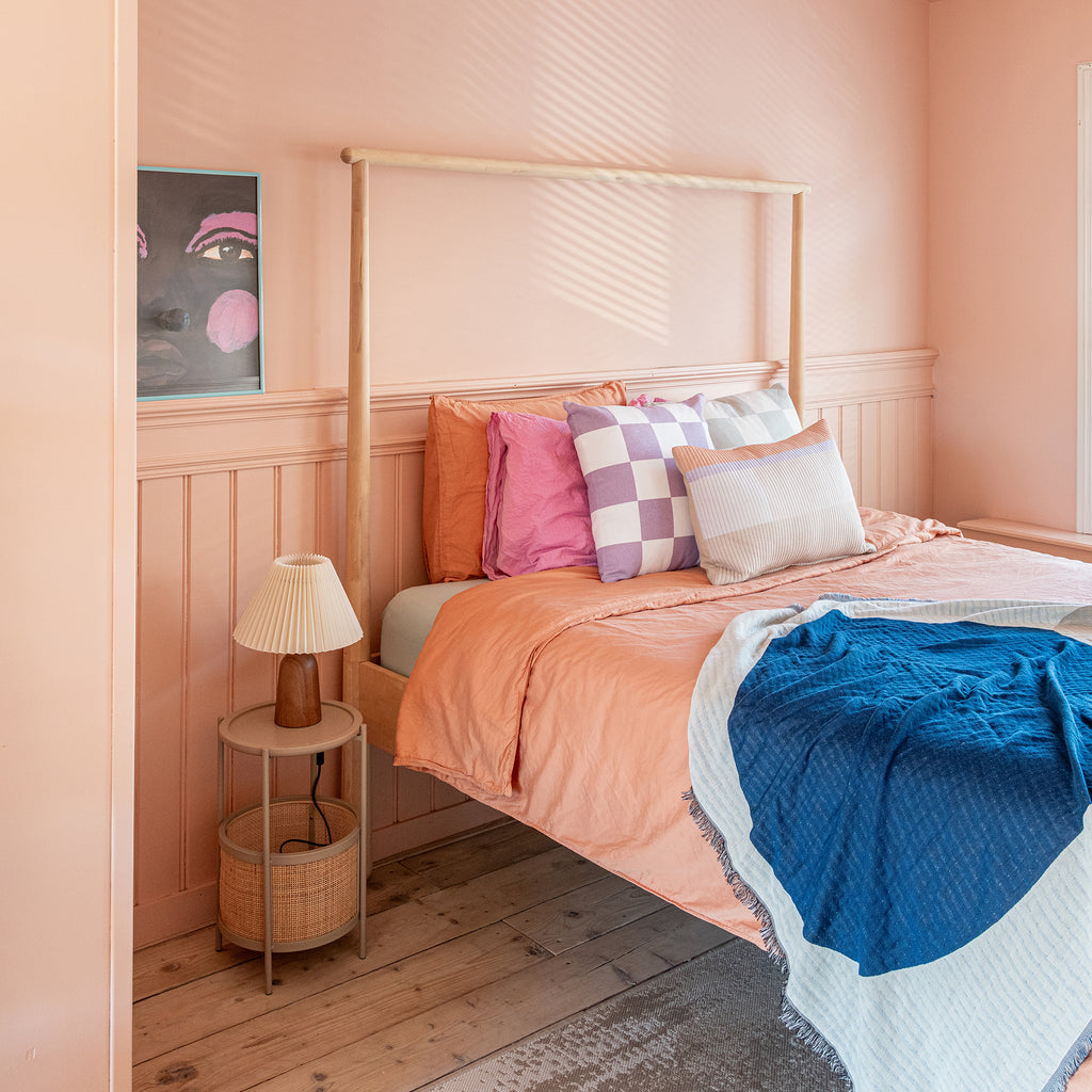 Een zacht en vrolijk interieur met tweedehands vondsten.