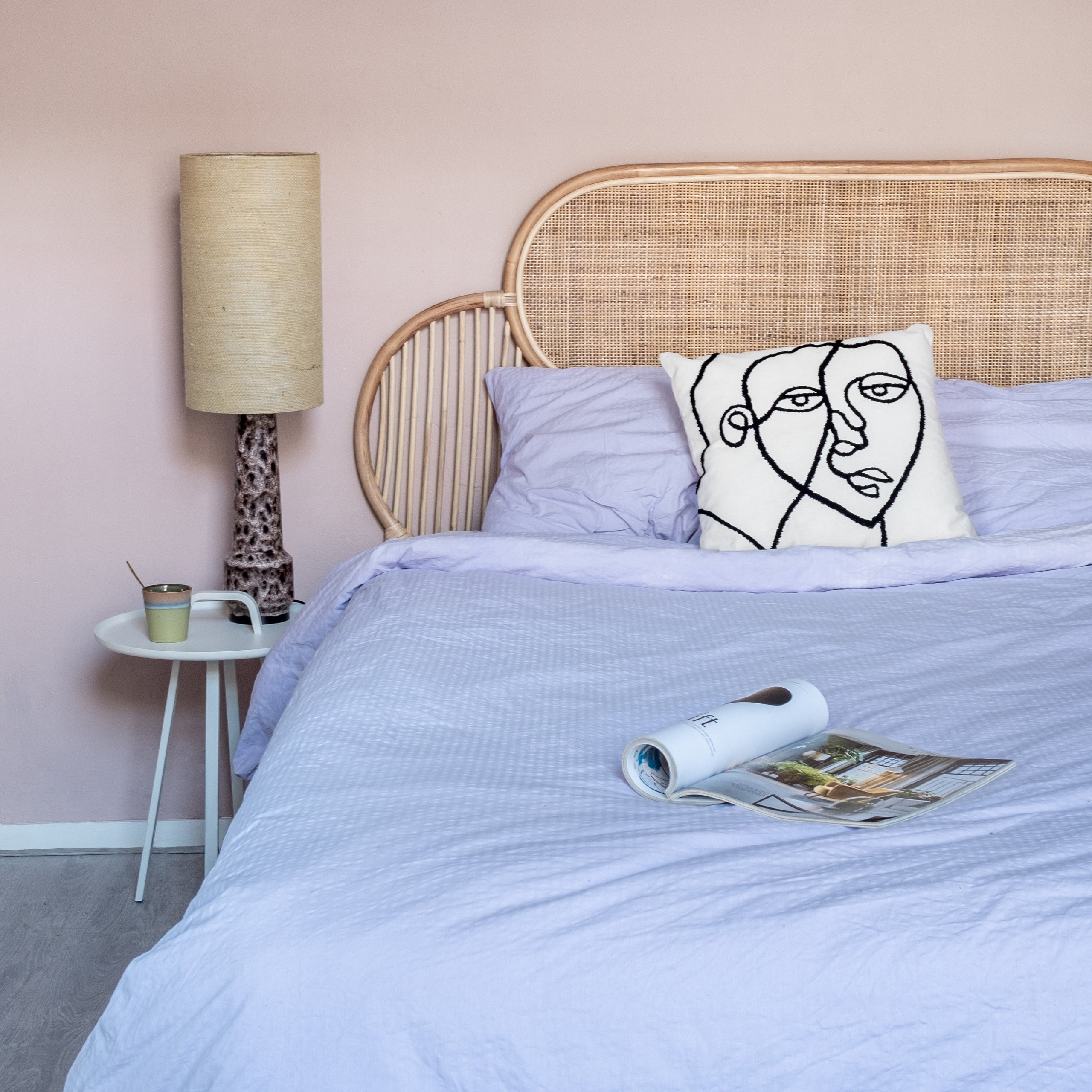 Naast vrolijke accessoires en fleurig servies mogen bloemen en planten niet ontbreken in haar interieur. "Ik vind het heerlijk om op zaterdag naar de markt te gaan om mooie verse bloemen uit te zoeken. Hier maak ik dan zelf een gezellig boeketje van." Ook persoonlijke items zijn een must in huis voor Kim. "Ik heb een hele toffe, oude lamp van mijn oma aan de muur hangen. Ook mijn Fest tafel zorgt ervoor dat mijn huis echt als een thuis aanvoelt. Ik heb dit bijzettafeltje tweedehands bij iemand in Groningen op de kop getikt, waardoor ik er leuke herrineringen aan heb.