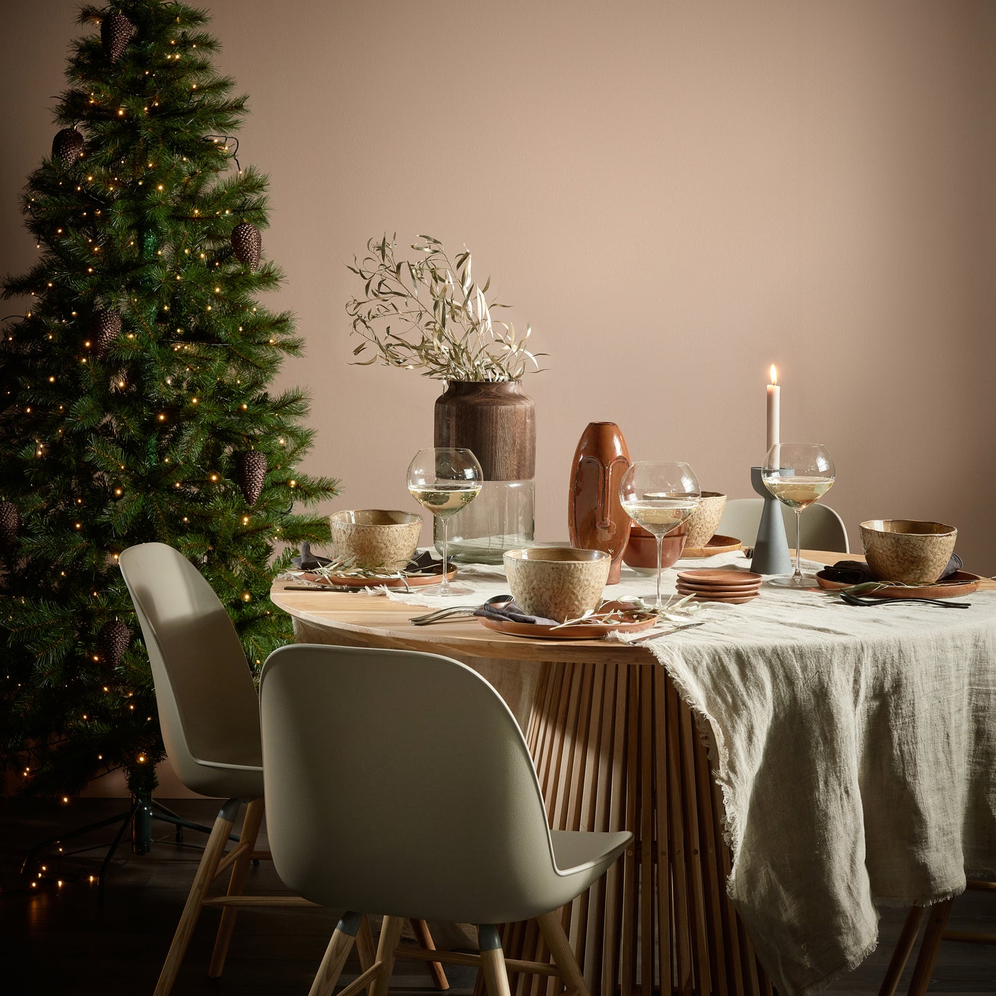 Dek de tafel deze kerst extra feestelijk met aardse kleuren en natuurlijke materialen.