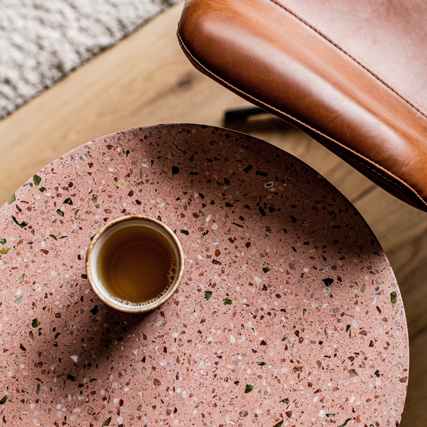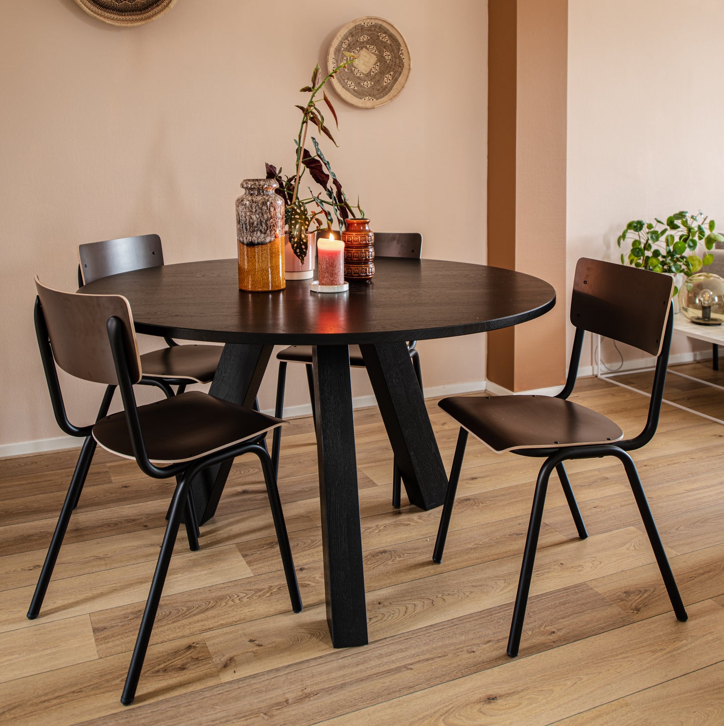 Warm pink, terracotta en zwarte accenten zorgen voor een warme en moderne uitstraling.