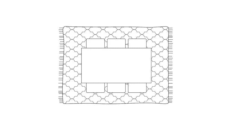 Voor de eetkamer is het aan te raden een vloerkleed te kiezen waar zowel de eettafel als de stoelen op passen. Zorg dat het vloerkleed minimaal 70 centimeter rondom de eettafel uitsteekt, zodat de stoelpoten bij het verschuiven niet op de randen van het vloerkleed staan.