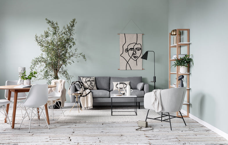 De kleur van de muren is sfeerbepalend in elke ruimte. Wit is een veilige keuze en kan stijlvol zijn, maar in veel interieurs oogt het snel saai en ongezellig. Een mooie kleur — ook al is dit een neutrale tint — maakt de woonkamer meteen veel sfeervoller.