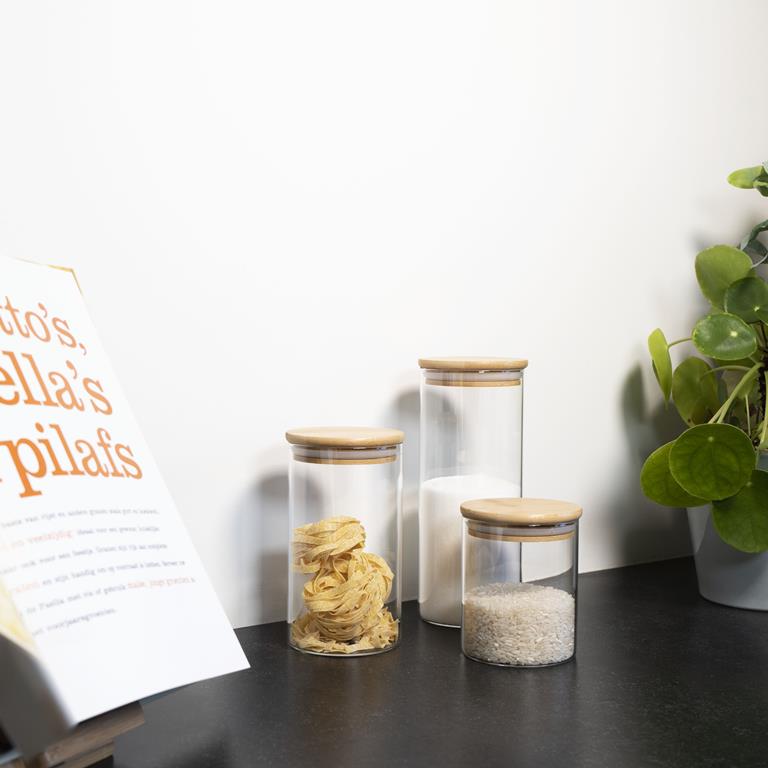 Orden en groepeer de overgebleven spullen op een logische manier. Bedenk goed wat je binnen handbereik wilt hebben tijdens het koken. In de keuken helpt een ladeorganizer om servies overzichtelijk te houden. Voorkom rommelige keukenkastjes door open pakjes en zakjes te vervangen door voorraadpotten voor rijst, pasta en crackers. In je kledingkast bespaar je ruimte door winter- en zomerkleding te scheiden. Gebruik opbergboxen of manden boven in je kast: in de winter bewaar je daar je zomerkleding en in de zomer je dikke wintertruien.
