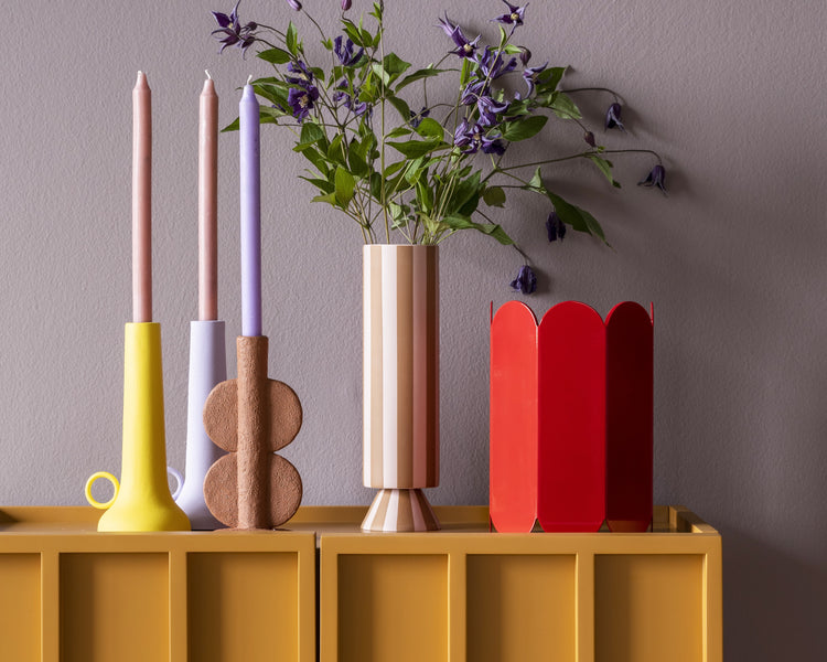 Maak je eetkamer klaar voor het najaar met zachte tinten zoals lichtroze, lila, oranje en cognacbruin, die samen een ultiem cozy herfstgevoel creëren. Niks wordt overgeslagen: muren, plafonds en gordijnen baden in gedurfde kleuren. Accenten in mint en rood maken het geheel af. Bold en gezellig, zo komen de najaarskleuren in je eetkamer volledig tot hun recht. Gestreepte sierkussens en kunstzinnige decoraties vullen de ruimte, met opvallende lampen, retro itemsen golvende statement meubels. Alles draagt bij aan een comfy en warme sfeer. Perfect voor de herfst!