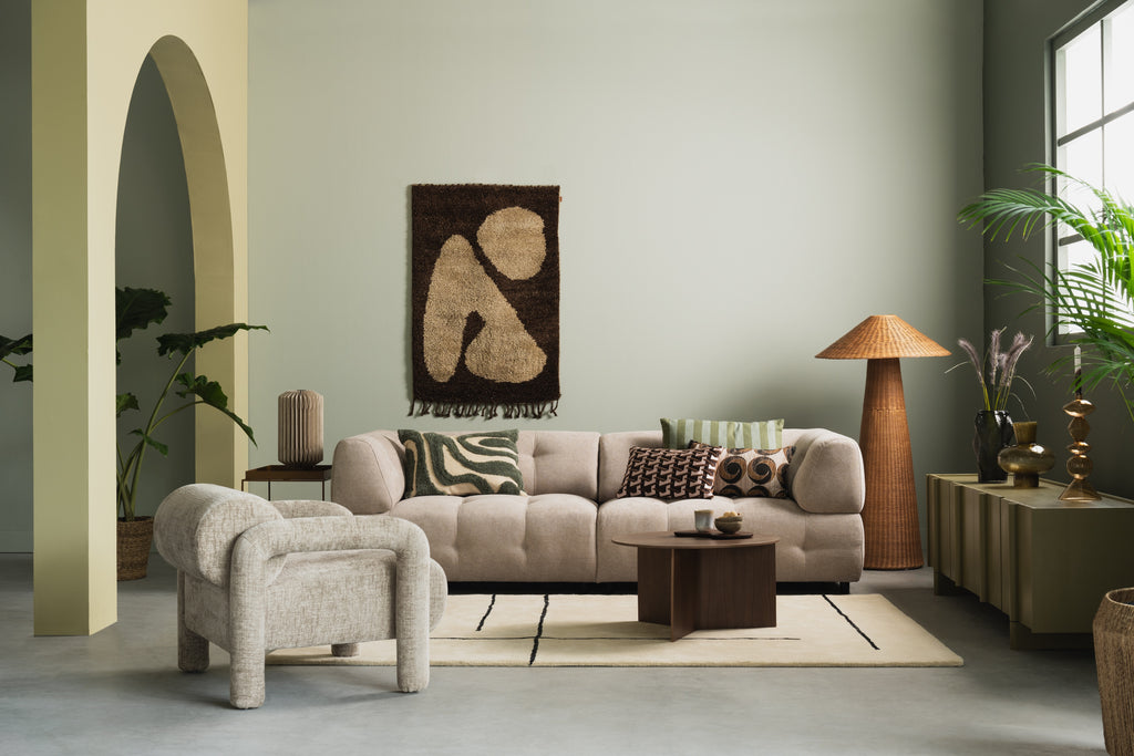 Vernieuwend aan dit thema zijn de meer uitgesproken kleuren en de opvallende grafische prints. Je shopt ze in woonaccessoires en verlichting. De harmonie uit de natuur komt terug in de talrijke organische vormen die je kunt combineren met veel beige en houtkleuren.
