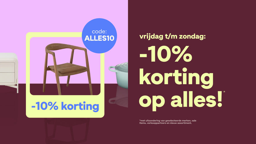 Shop alleen dit weekend je favorieten met 10% extra korting. Gebruik de code ALLES10.