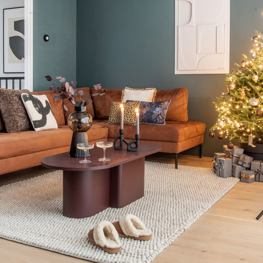 Ga jij ieder jaar all out met kerstdecoratie, of kies je liever een aantal feestelijke items die ook in januari nog leuk zijn? Lynn: "Ons vloerkleed had een aantal vlekken en was daarom aan vervanging toe, dit nieuwe vloerkleed van HAY is helemaal feestdagen-proof! Daarnaast was ik al een tijdje op zoek naar een nieuwe salontafel, de Looi van noo.ma past perfect bij onze eetkamerstoelen. Deze twee items hebben een chique look, waardoor ze de ideale basis vormen voor een feestelijke kerst make-over." Kussens met een mooie print, een bijzondere vaas en natuurlijk een kandelaar voor sfeervolle kaarsen maken de make-over compleet. "Waarom voor items gaan die je alleen met kerst uit de kast haalt? Deze items passen ook na 1 januari nog in ons huis, dat is ook direct een stuk duurzamer".
