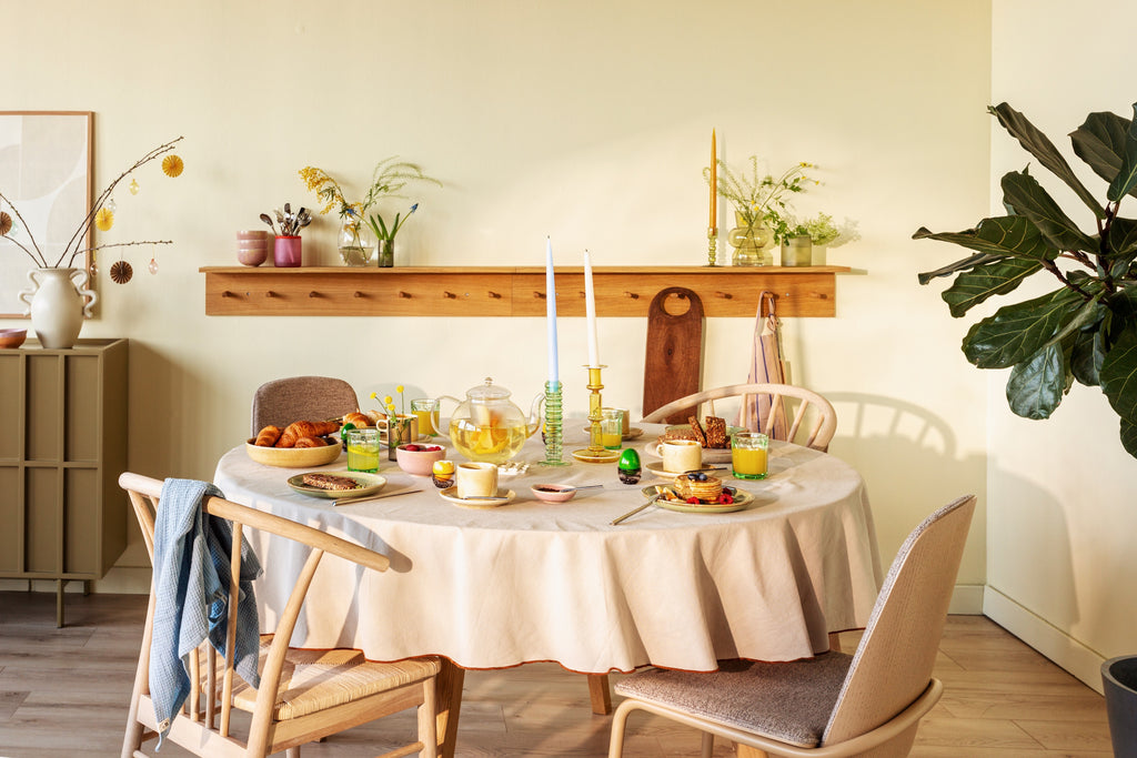 De paasbrunch wordt met deze frisse pasteltinten en natuurlijke accenten nóg gezelliger.