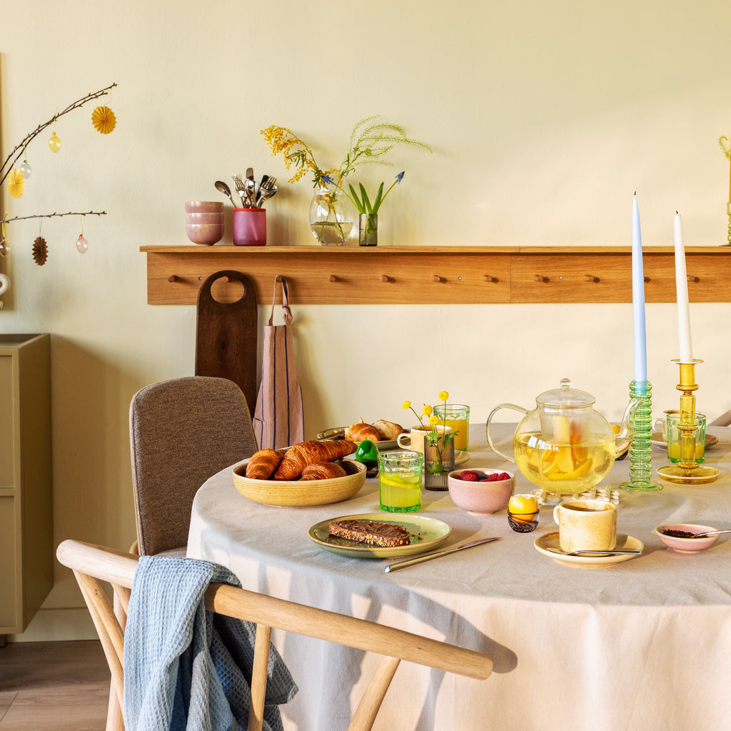 Serveer de heerlijke gerechten uit op vrolijk servies. Kies voor kleurrijke mokken, borden en eierdopjes om het lentegevoel te behouden. Een vrolijke paastafel is het resultaat, eetsmakelijk!