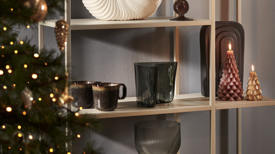 Kies voor glanzende decoratie als glazen kandelaars, spiegelende schalen en metalen ornamenten. De weerkaatsing van kaars- en sfeerlicht in deze materialen zorgt voor een extra feestelijke sfeer. Ook accessoires met een parelmoerglans of gouden accent voorzien je huiskamer direct van een chic tintje voor de feestdagen.