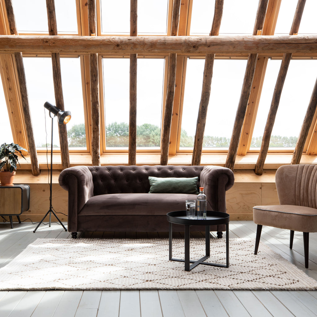 Denk van tevoren goed na over de maat van het vloerkleed. Om één geheel te creëren, is het het mooist als alle voorpootjes van de zitmeubels op het kleed staan. Zo vormt je zithoek een mooie eenheid in je kamer en struikelt er niemand meer over!