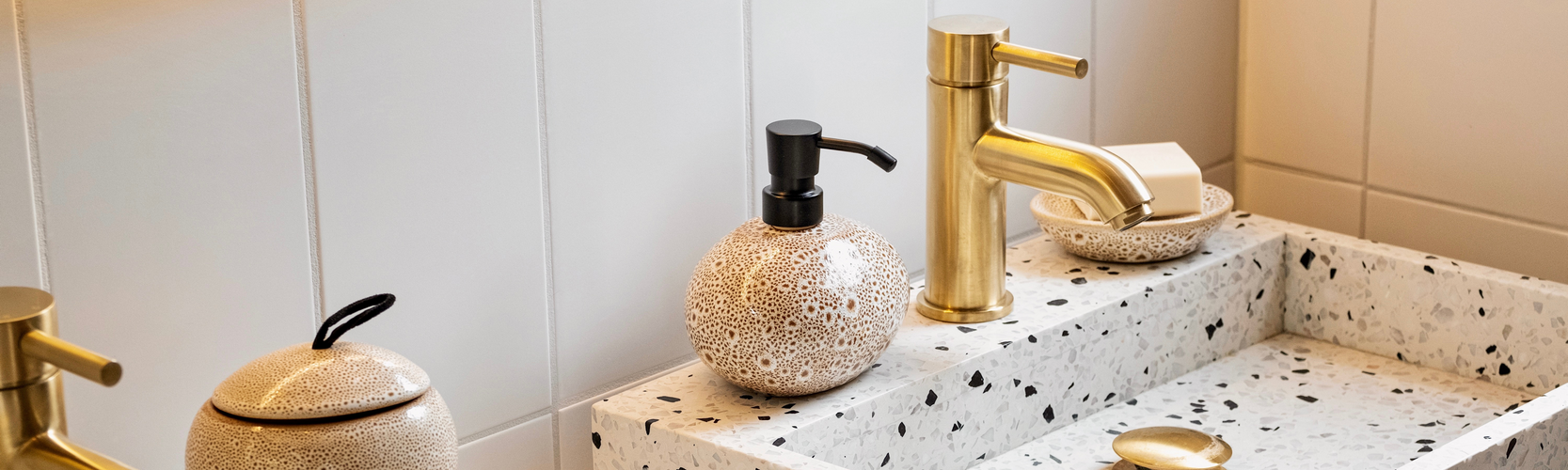 Creëer een moderne uitstraling en houd voor de accessoires in je badkamer een rustig kleurpalet aan met grijs- en beigetinten. Natuurlijke materialen komen hier het best tot hun recht: denk aan schaaltjes voor sieraden in porselein of een stijlvolle sieradendoos van glas. Om een spa-effect te creëren in je badkamer is een opgeruimde wastafel een must. Berg je make-up op in deze handige make-up organizer en geef jouw badkamer essentials een mooi plekje in deze porseleinen vierdelige set van Serax in een beigetint. Pedaalemmers verstoppen in een hoekje is met deze minimalistische pedaalemmer verleden tijd: dit exemplaar mag gezien worden!