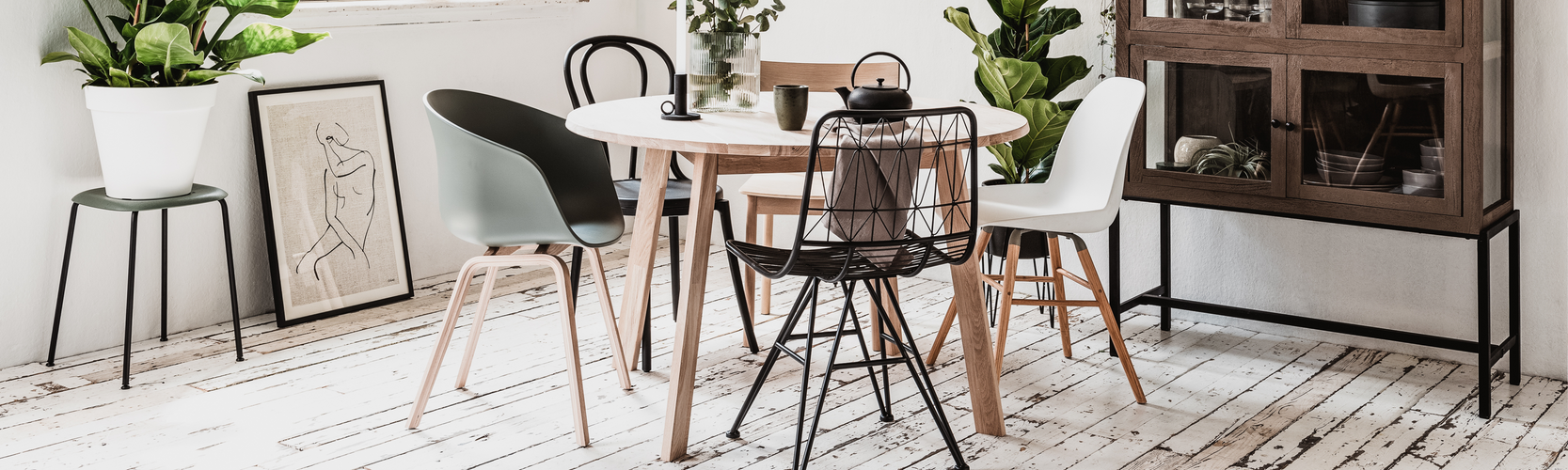 Het is steeds populairder om verschillende stoelen aan de eettafel te schuiven. Wij snappen goed waarom: er zijn zóveel mooie stoelen, wat de keuze niet altijd makkelijk maakt. Wanneer je voor verschillende stoelen gaat, ben je minder beperkt. Een mix aan kleuren, materialen en ontwerpen geeft je eethoek daarnaast een speelse twist! Met deze tips voorkom je dat het een onsamenhangend geheel wordt.