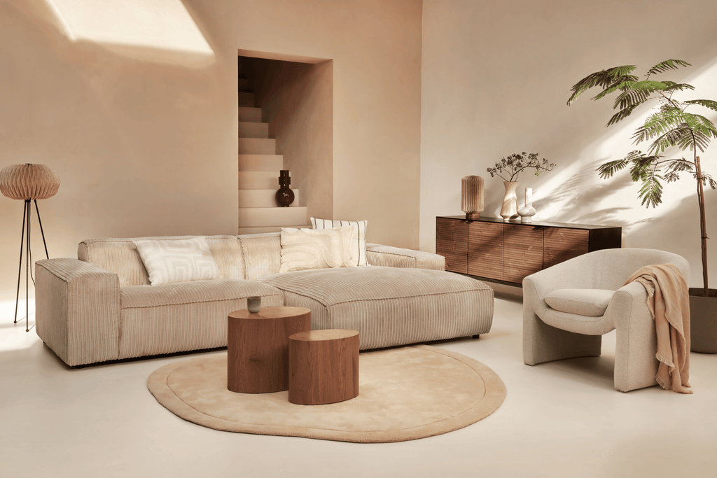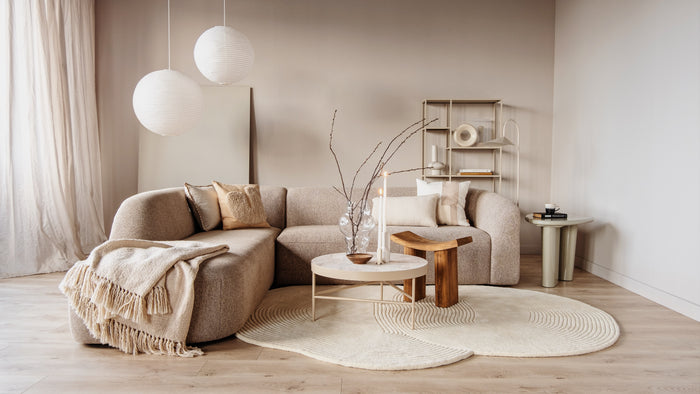Laat je omarmen door zachte eenvoud met de voorjaarstrend Soft Serenity. Organische vormen, lichte pasteltinten en subtiele texturen zorgen voor een kalme en ontspannen sfeer in huis. Beige is de basis, aangevuld met woonaccessoires in poederroze en lichtblauw, terwijl dunne gordijnen het licht zacht filteren. Ronde meubels zoals een beige fauteuil gecombineerd met matte keramiek geven je interieur een rustige uitstraling, perfect voor een serene zithoek of slaapkamer. Geen drukte, geen onrust – alleen harmonie en balans. Met Soft Serenity creëer je een zomers toevluchtsoord waar je helemaal tot jezelf komt!