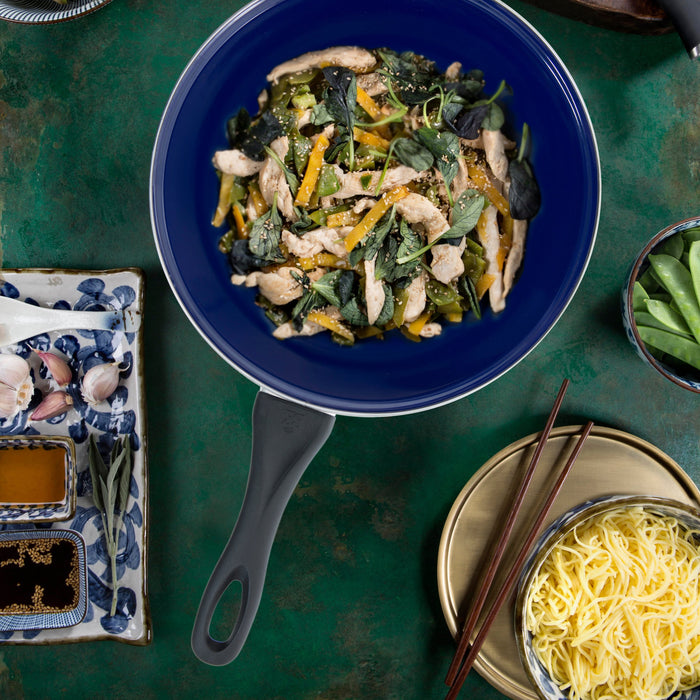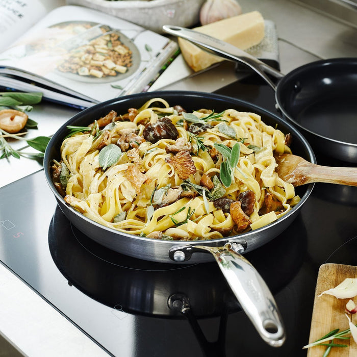 Een plaatstalen pan is gemaakt van honderd procent ijzer. Nu denk je natuurlijk meteen: 'maar dat roest toch?'. Dat klopt en daarom verdient deze pan extra liefde! Als het goed is, heb je jouw plaatstalen pan voor gebruik netjes ingebrand, zodat je er de sterren van de hemel mee kunt bakken. Na gebruik spoel je de pan simpelweg schoon met heet water. Vervolgens droog je hem af met keukenpapier. Vermijd bij een plaatstalen pan afwasmiddel, laat hem nooit weken en droog hem altijd goed af.