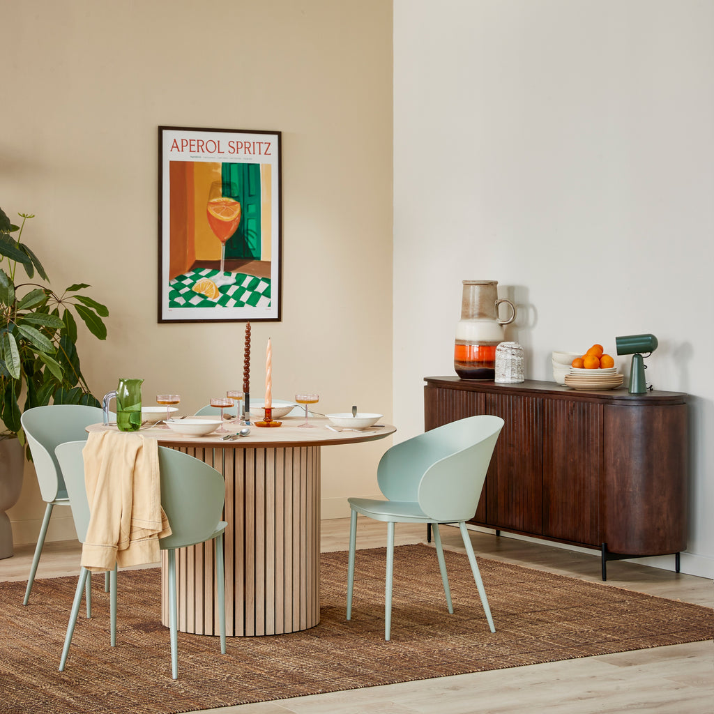 Wil je het beste van twee werelden samenvoegen? Ga dan voor een ovale eettafel! die je middenin de ruimte zet. Een ovale eettafel heeft een wat zachtere uitstraling, veel tafeloppervlak zoals bij een rechthoekige tafel, maar de speelsheid van een ronde tafel. Daarnaast schuif je aan een ovale eettafel makkelijk wat extra stoelen aan. Veel voordelen dus! En niet te vergeten: een ovale eettafel past perfect bij de organische vormen die we de laatste jaren veel zien!