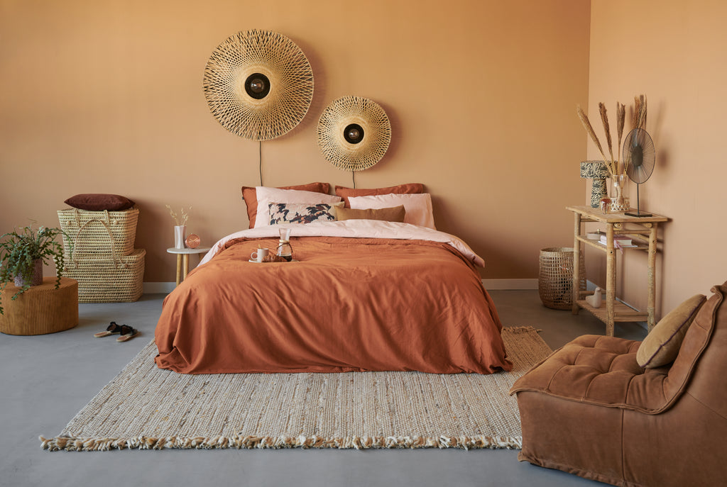 Alles voor een slaapkamer met warme kleuren en een boho tintje.