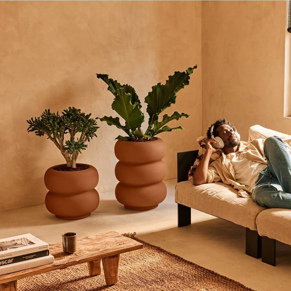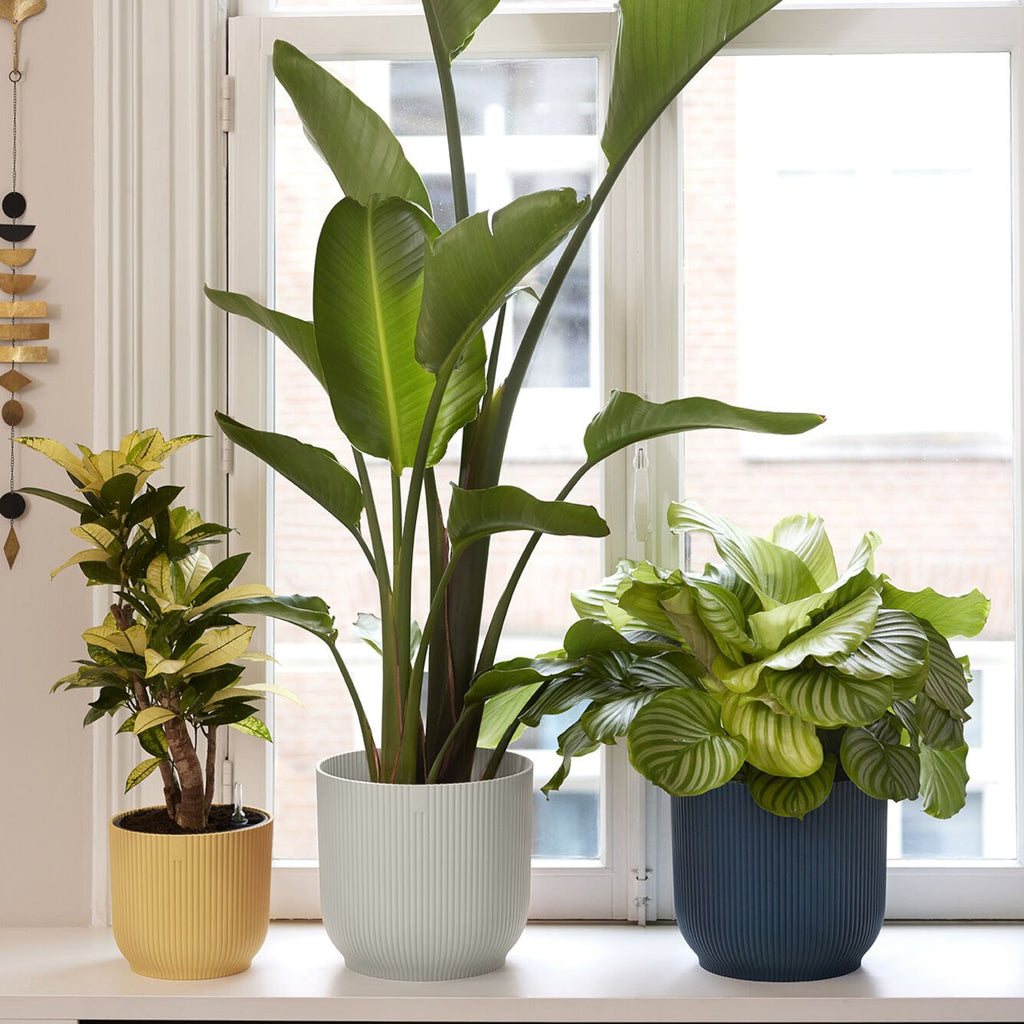 De keuze van materiaal is een belangrijk onderdeel van de zoektocht naar een juiste bloempot. Kunststof is een praktisch materiaal: lichtgewicht, onderhoudsvrij en niet ademend. Een kunststof bloempot voorkomt uitdroging van je planten. Terracotta potten zuigen bijvoorbeeld zelf veel water op, waardoor je soms lastig kunt inschatten of je de plant voldoende water hebt gegeven. Wel een leuk voordeel van terracotta: je kunt dit materiaal verven, zo pas je hem altijd aan op je interieur!