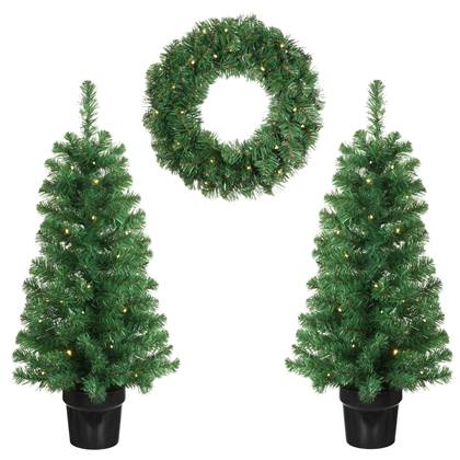 Black Box Trees Norton Set van 2 Kunstkerstbomen en 1 Kerstkrans - LED