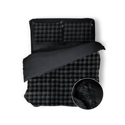 Eleganzzz Dekbedovertrek Shiny Bubble Pom Pom Flanel Fleece - black