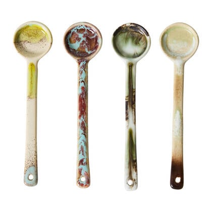 HKliving 70's Ceramics Lepels Set van 4 - L 12,5 cm - Blend