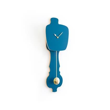 KLOQ Wandklok met slinger in petrol blauw & glimmend goud - maat S