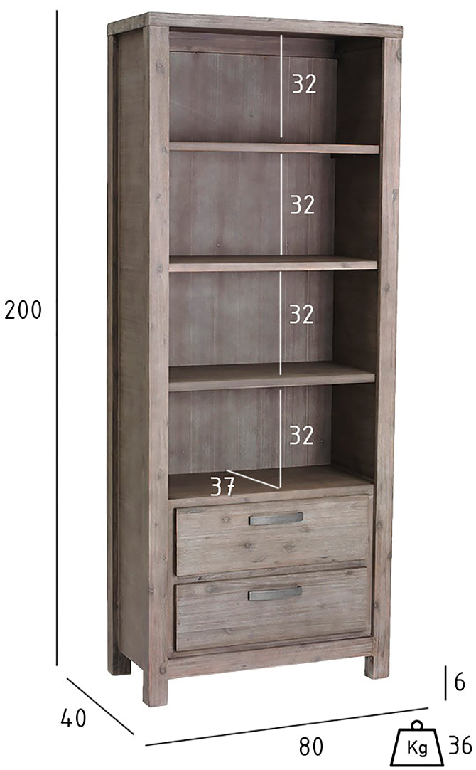 Acaciahouten Alaska boekenkast met 2 laden voor iedere thuisbibliotheek