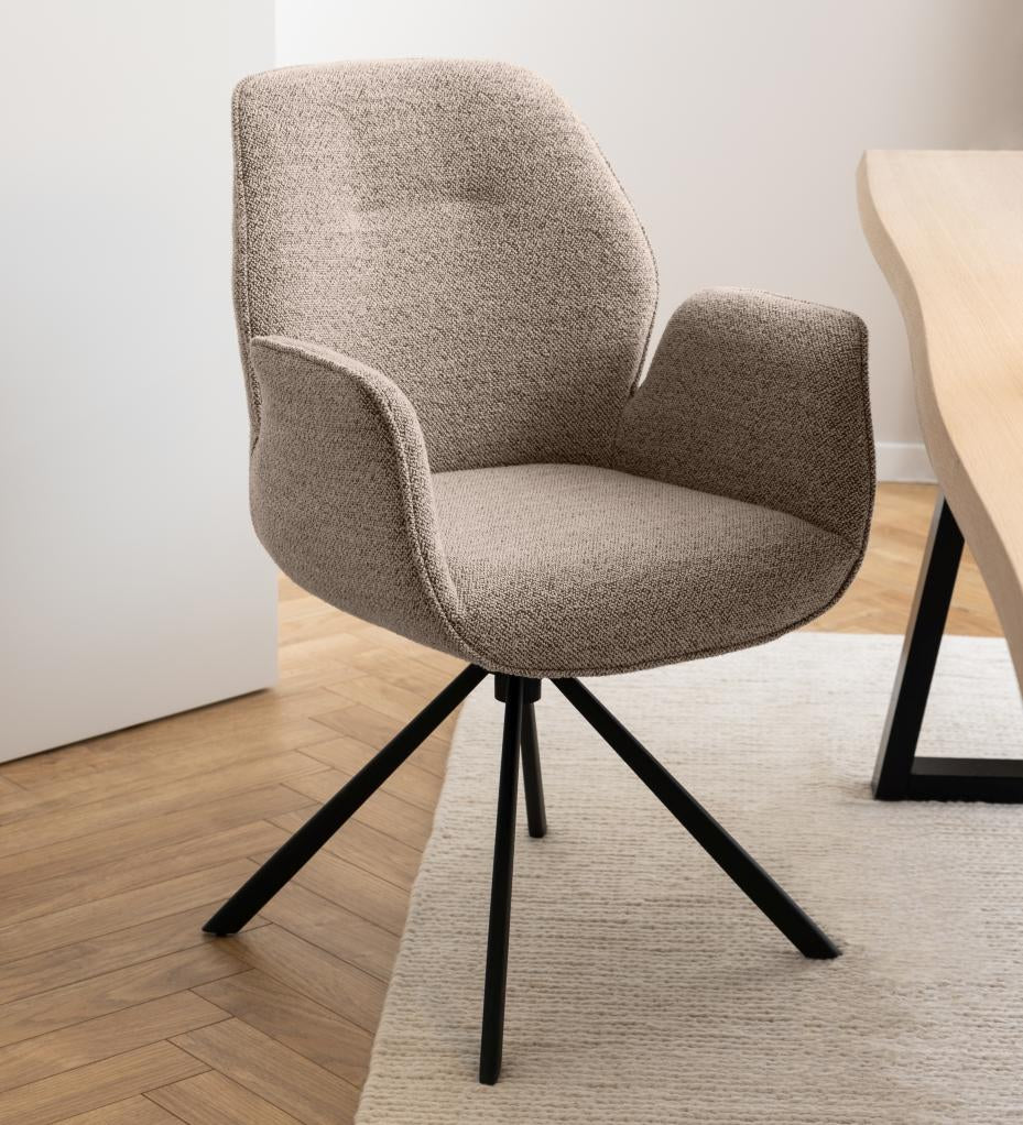 Draaibare eetkamerstoel in beige boucle stof