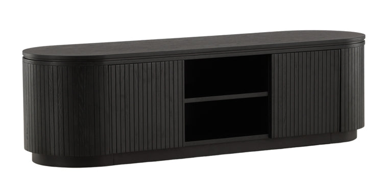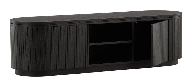 Modern zwart eiken Tv-meubel met veel opbergruimte