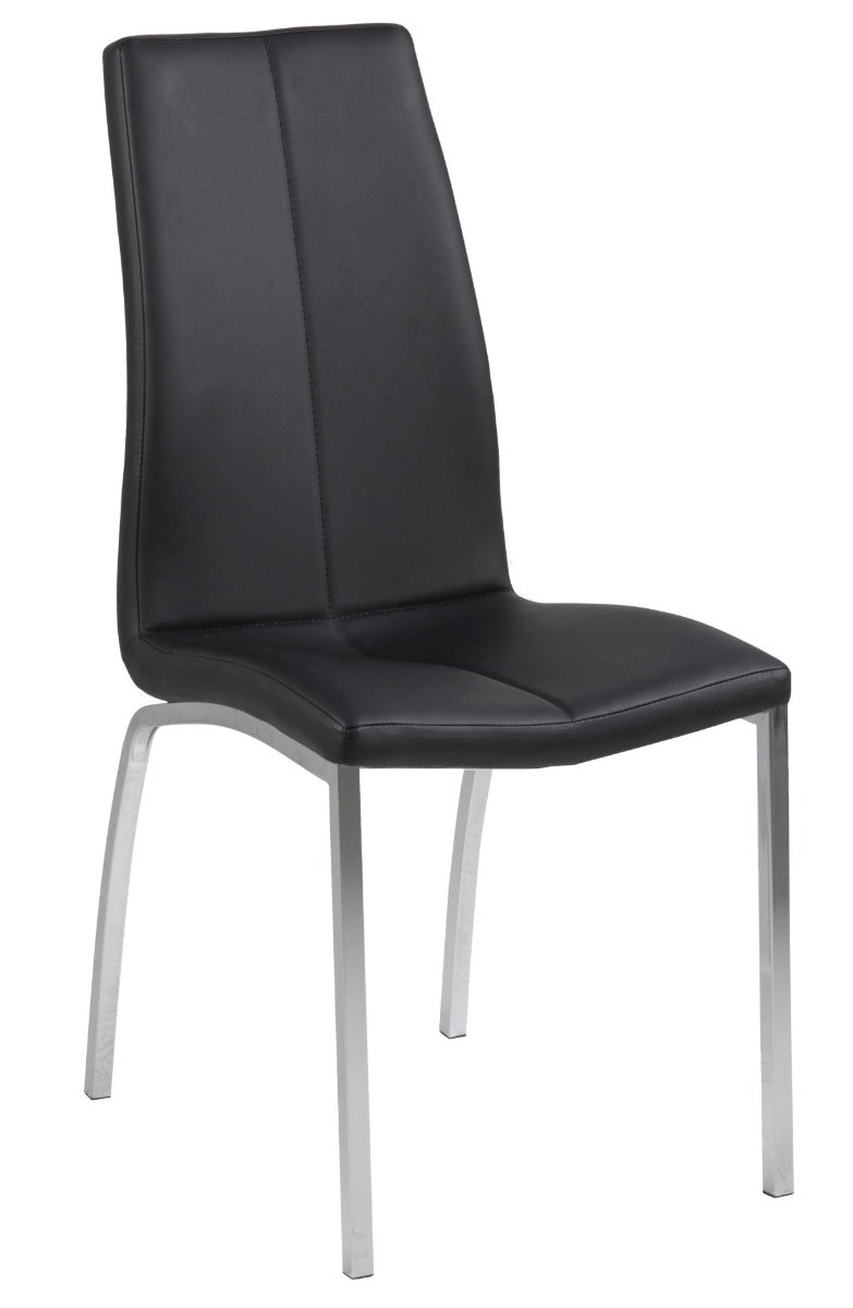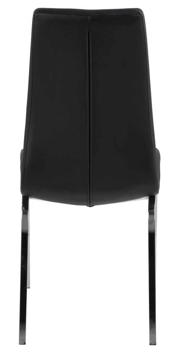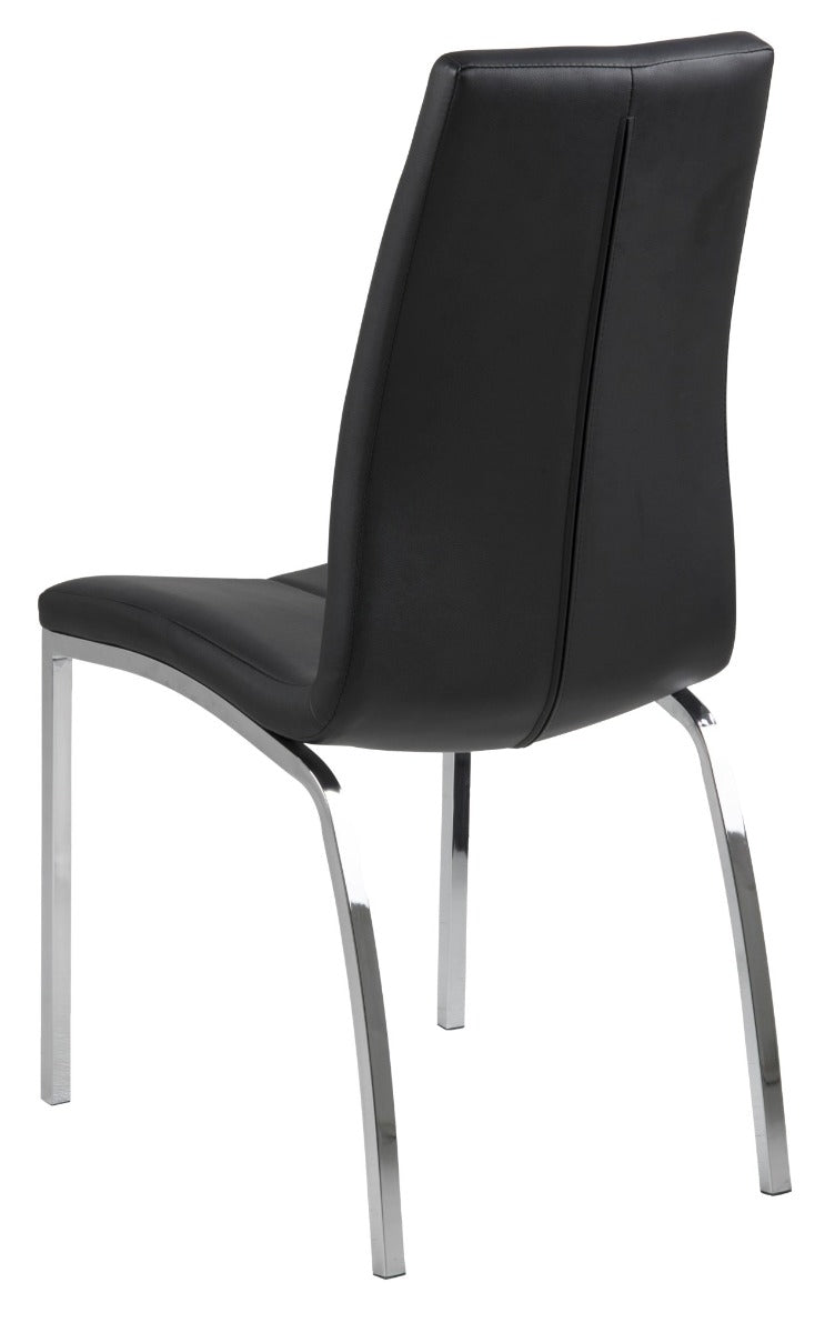Deze eetkamerstoel met een moderne uitstraling heeft een kunstleren rugleuning en zitting en staat op chromen poten Deze comfortabele stoel past perfect bij een modern interieur maar is ook makkelijk te combineren met andere interieurstijlen