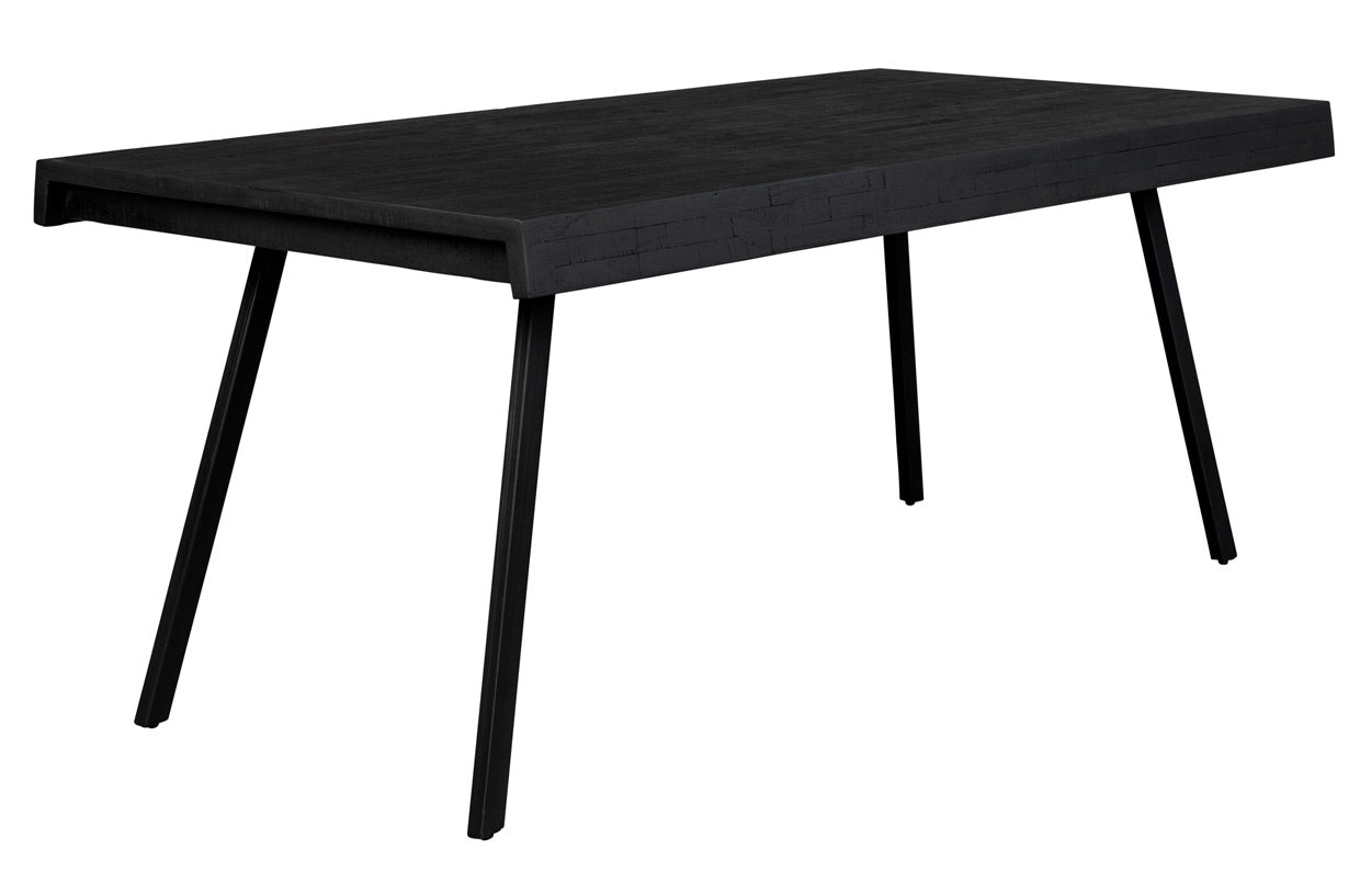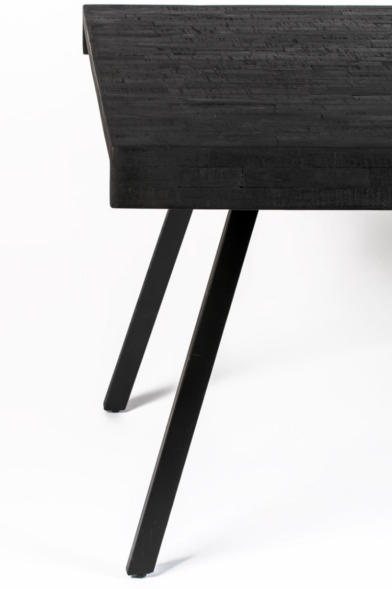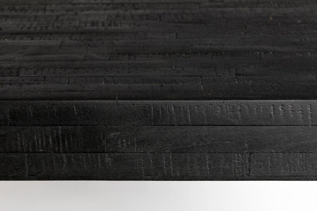 - Materiaal tafelblad: gerecycled teakhout met mat zwarte finish en transparante nitro lak