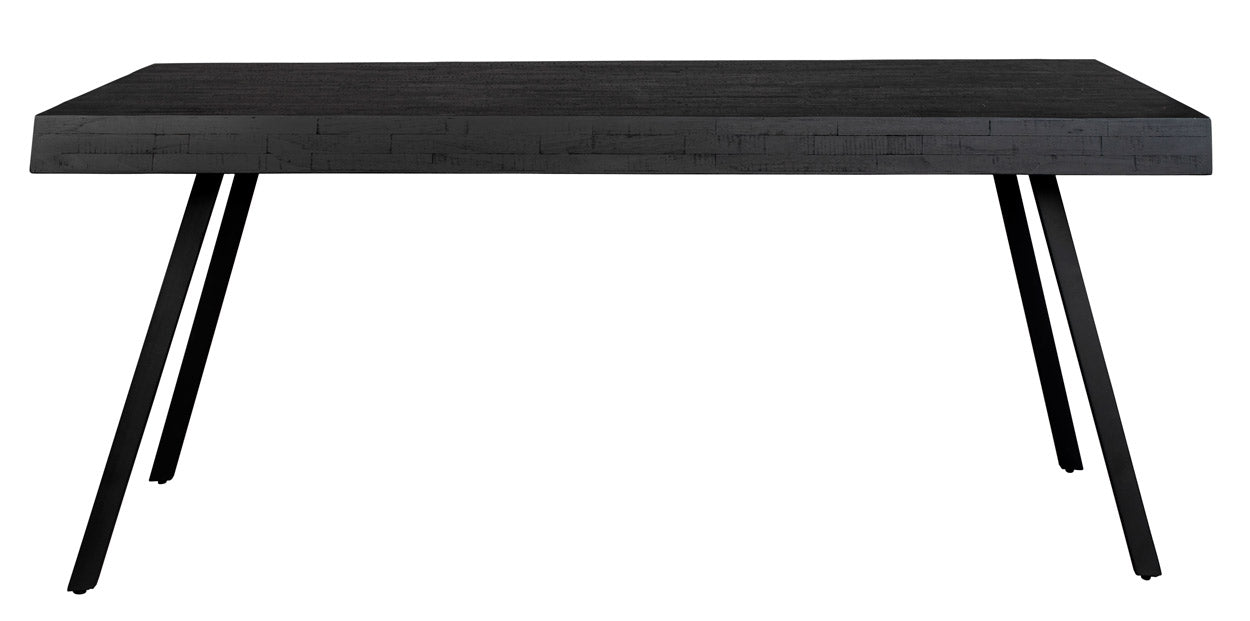 De 24Designs London eettafel is praktisch en stijlvol tegelijk Het tafelblad is gemaakt van gerecycled teakhout en heeft een mat zwarte finish Dit in combinatie met het zwart stalen frame met antieke melamine-coating geeft de eettafel een stoere, robuuste uitstraling