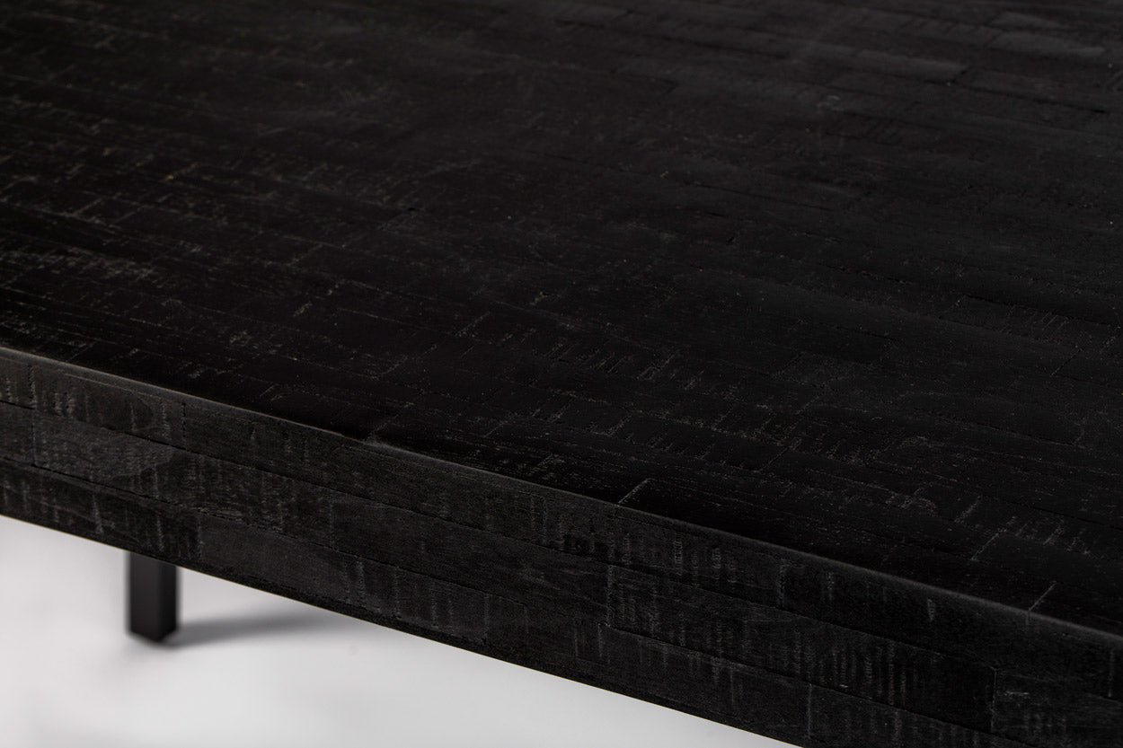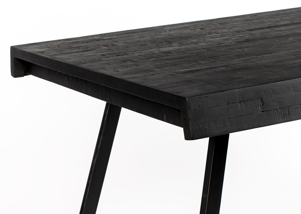 - Materiaal tafelblad: gerecycled teakhout met mat zwarte finish en transparante nitro lak