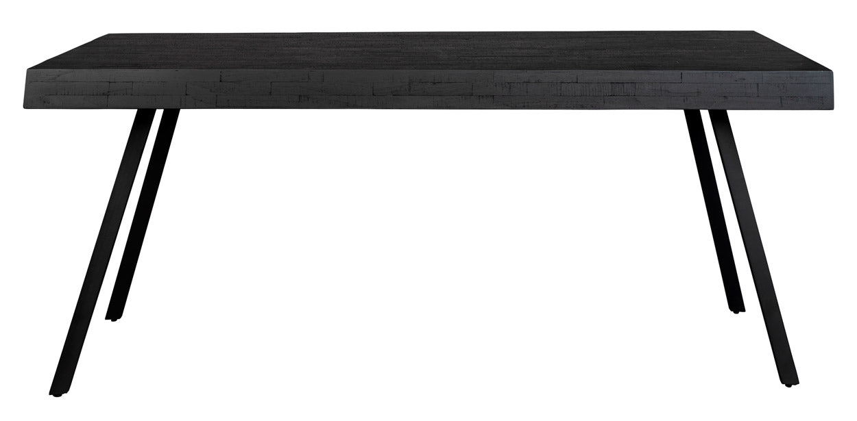De 24Designs London eettafel is praktisch en stijlvol tegelijk Het tafelblad is gemaakt van gerecycled teakhout en heeft een mat zwarte finish Dit in combinatie met het zwart stalen frame met antieke melamine-coating geeft de eettafel een stoere, robuuste uitstraling