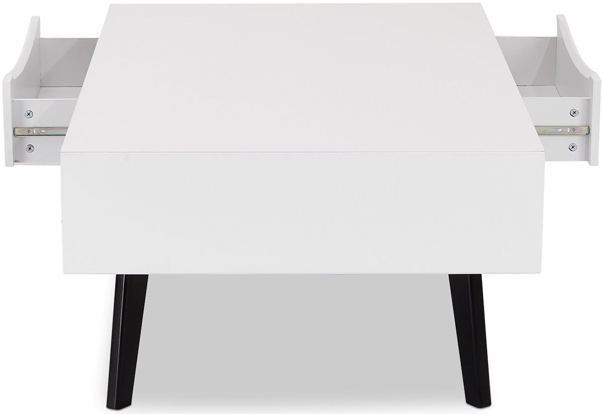 Minimalistische witte salontafel met zwarte poten