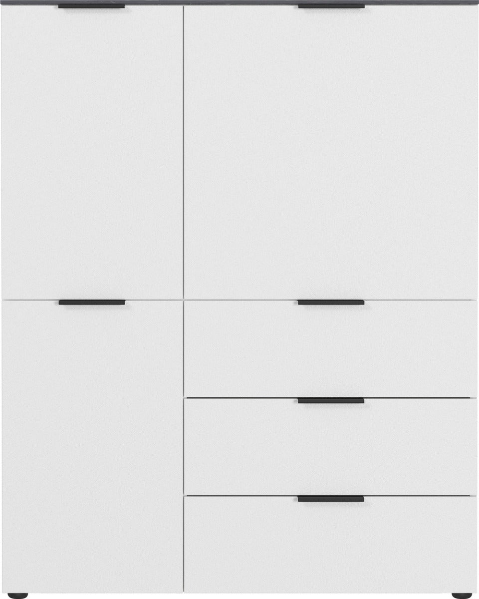 - Voorzien van drie zelfsluitende lades, drie gedempte deuren en drie in hoogte verstelbare planken