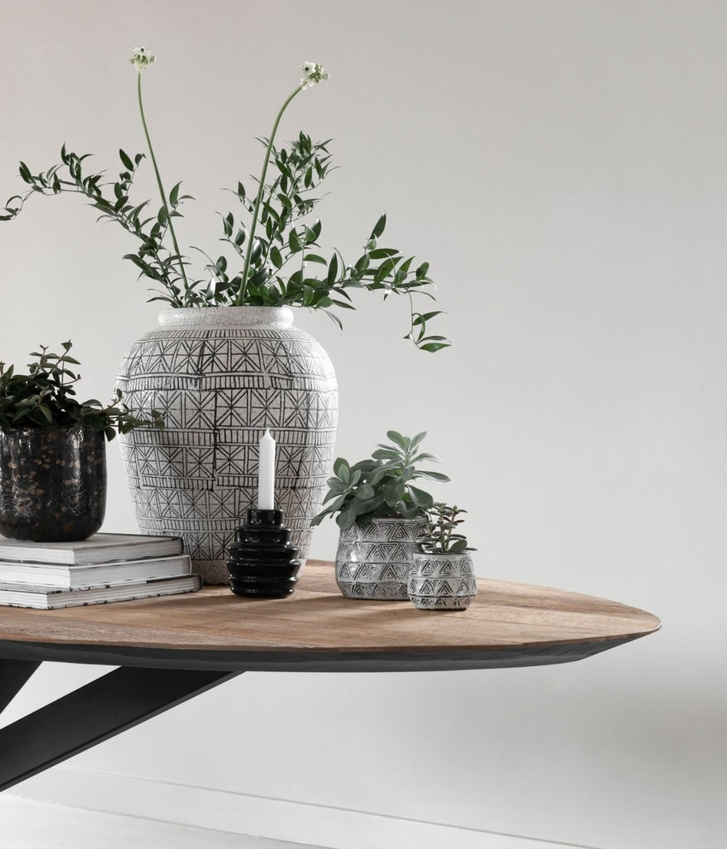 Dankzij de ovale vorm is de tafel geschikt voor vele interieurs, daarnaast brengt het ovale tafelblad ook veel sfeer met zich mee Je etentjes worden nog gezelliger doordat je iedereen aan kan kijken Schuif er een paar mooie eetkamerstoelen onder en je eethoek is compleet