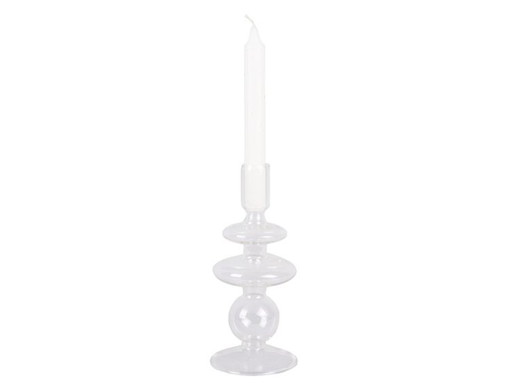 2x Present Time Candle Holder Glass Art Rings Medium Clear