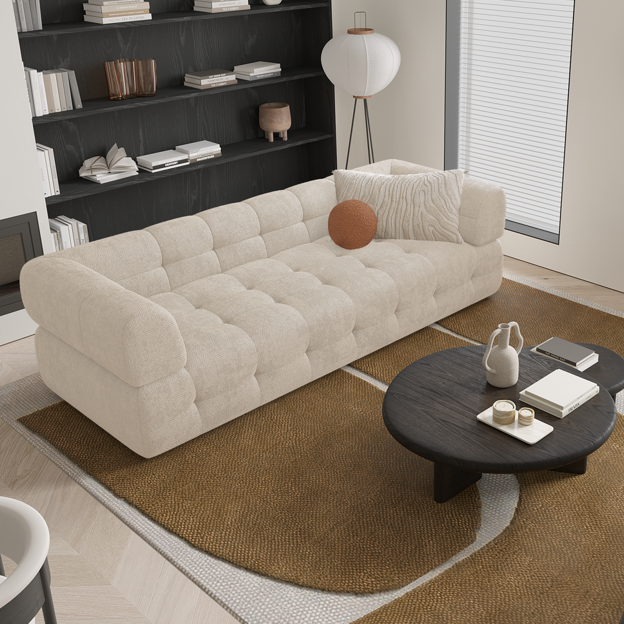 De CHARLIE bank, met zijn ronde vormen en trendy design, verandert je woonkamer in een elegante en warme ruimte. Het is een echt middelpunt dat comfort en stijl combineert om je interieur te sublimeren.