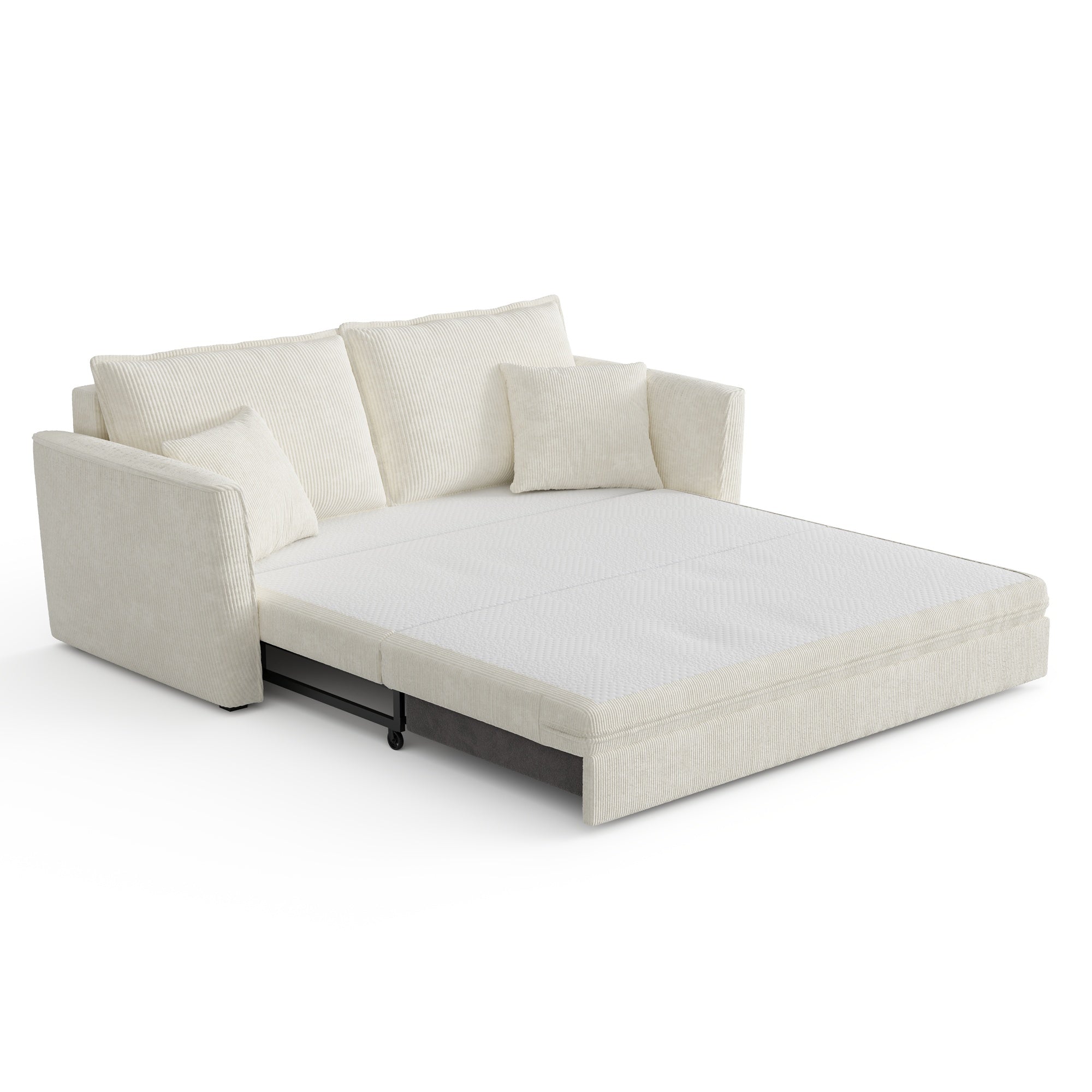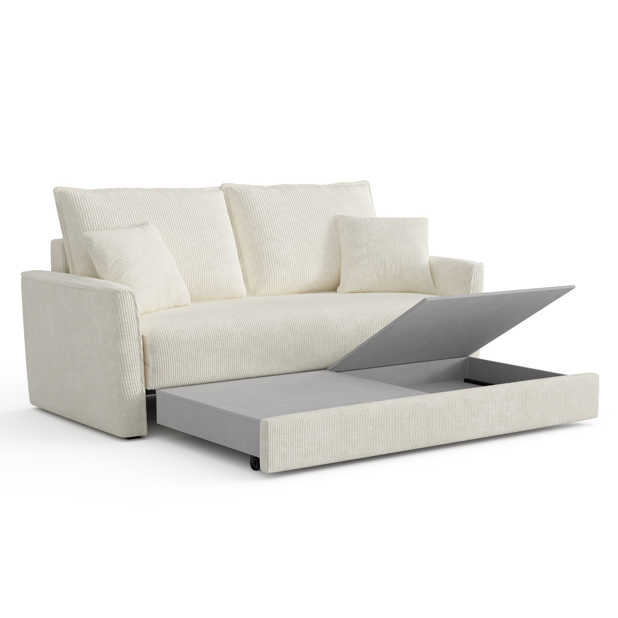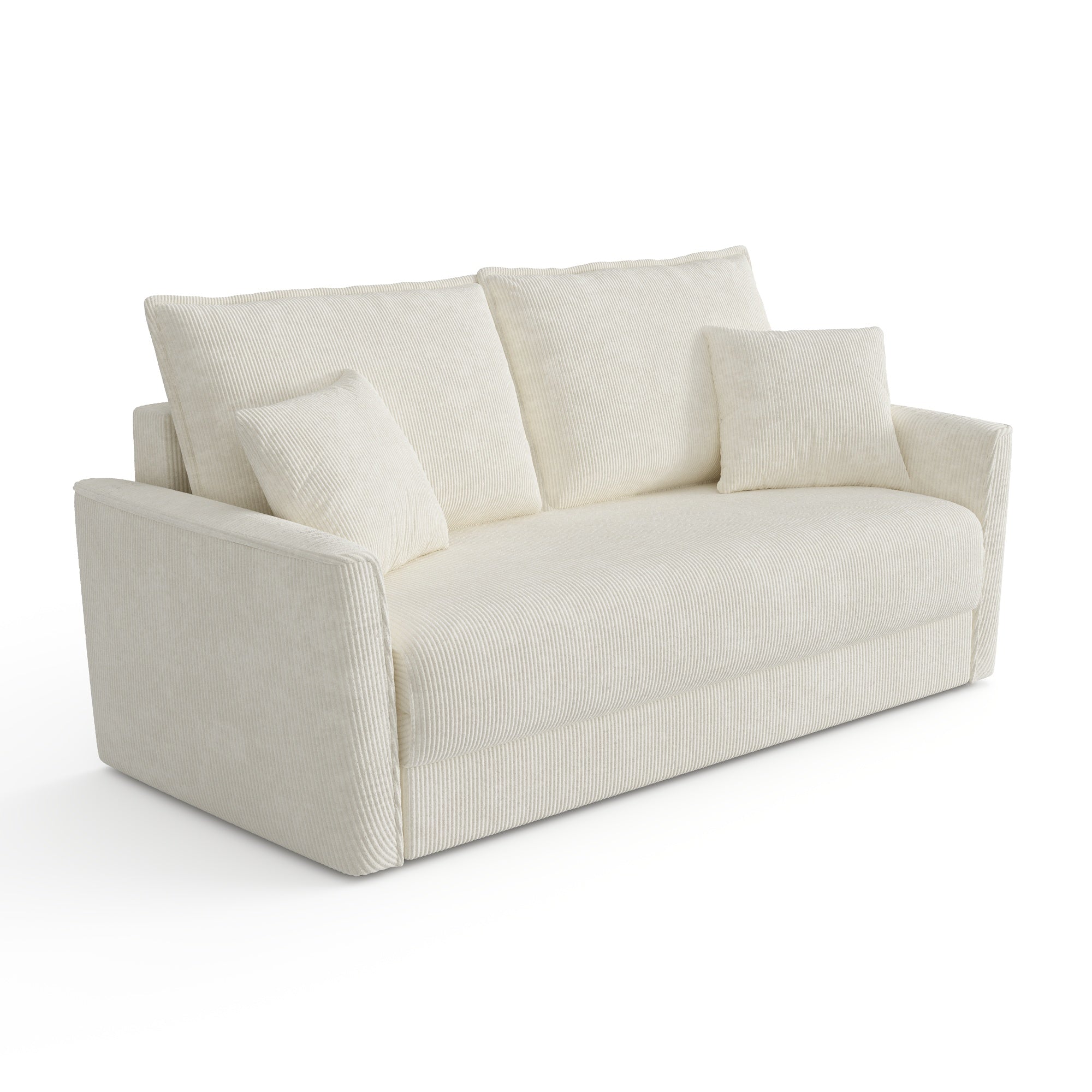 3-zits crèmekleurige ribfluwelen slaapbank 180cm