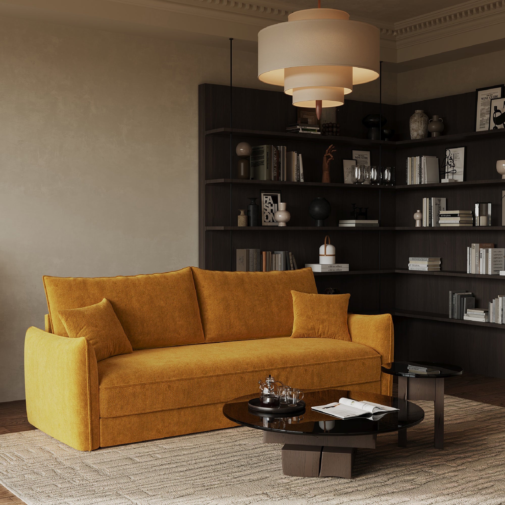 3-zits fluwelen slaapbank met mosterdtextuur 213cm