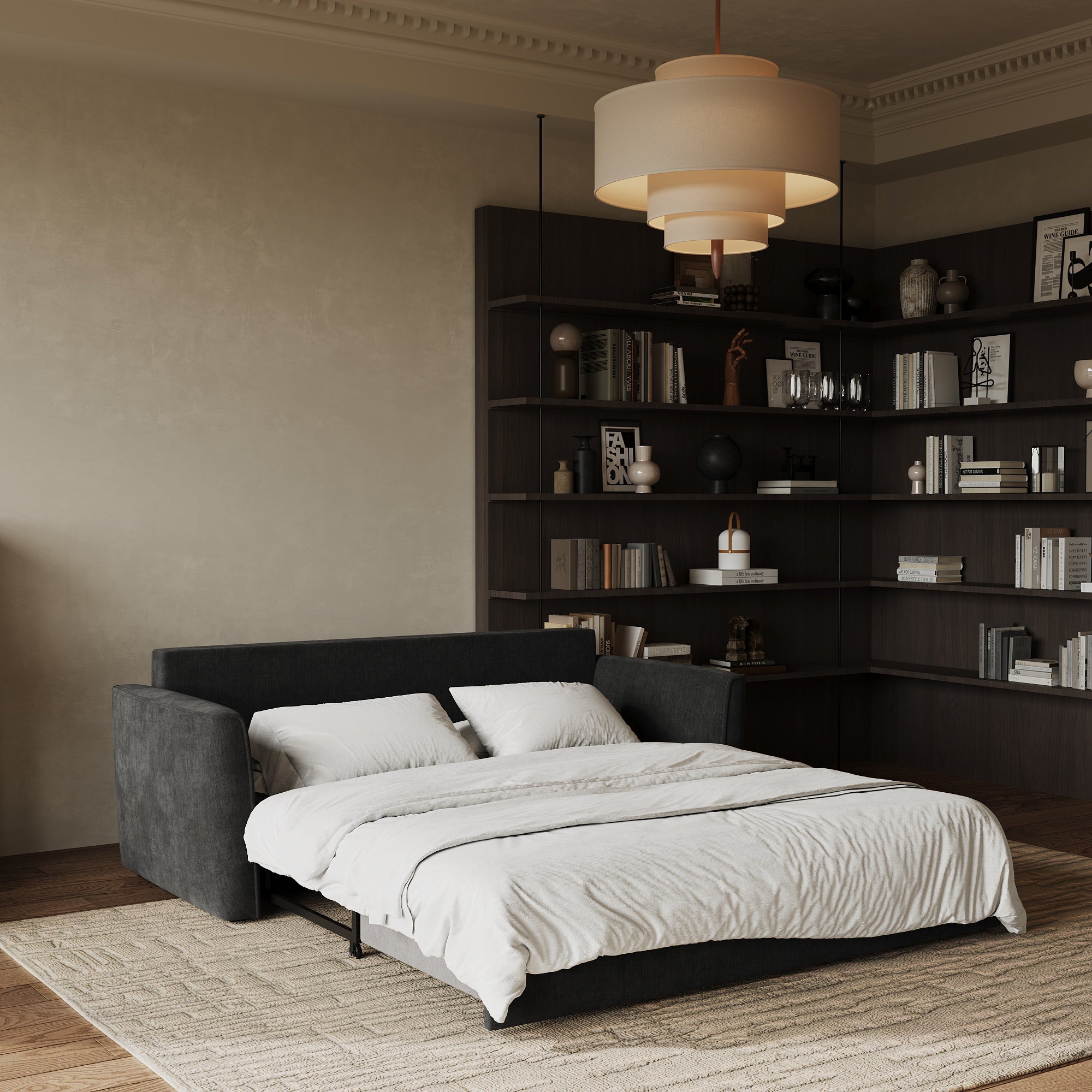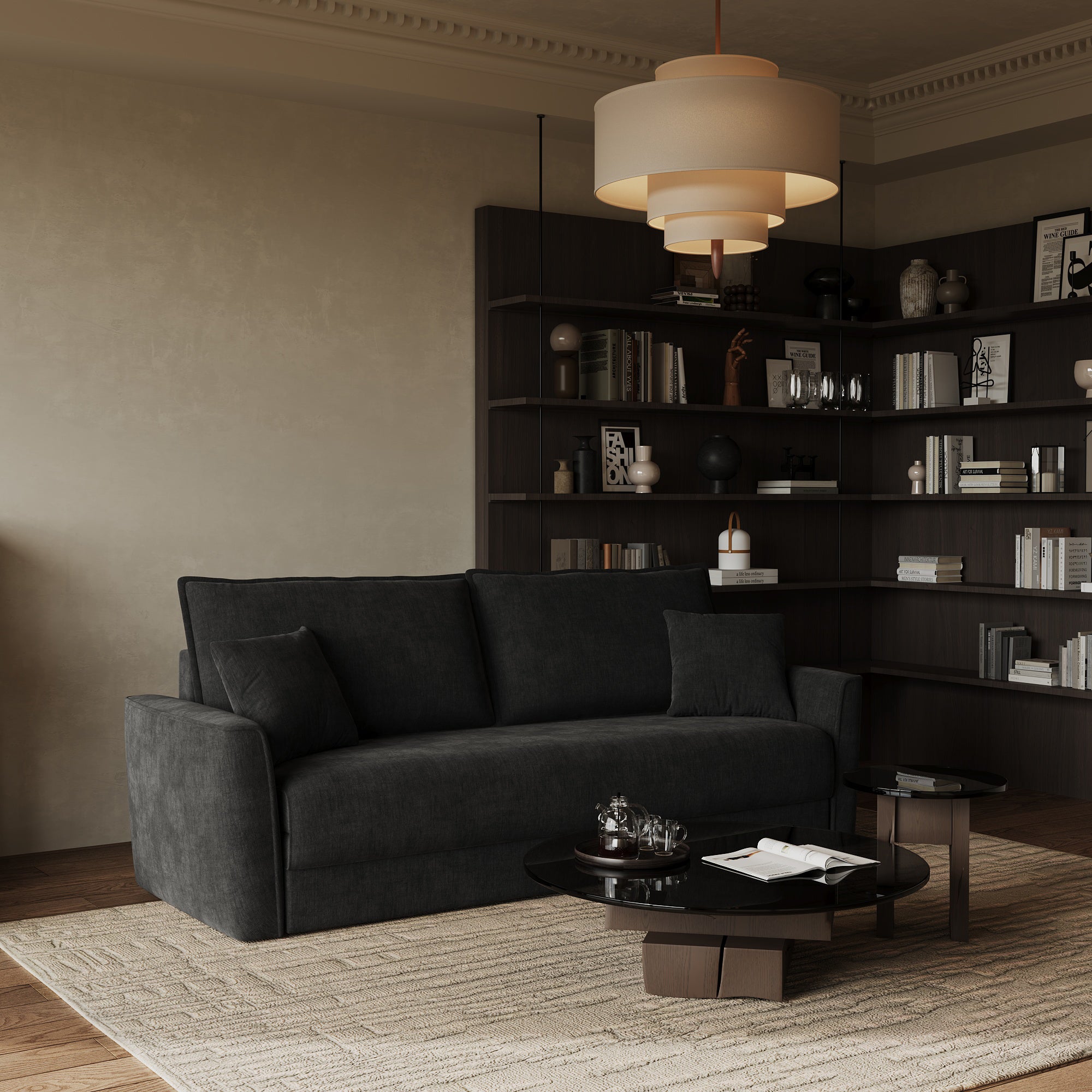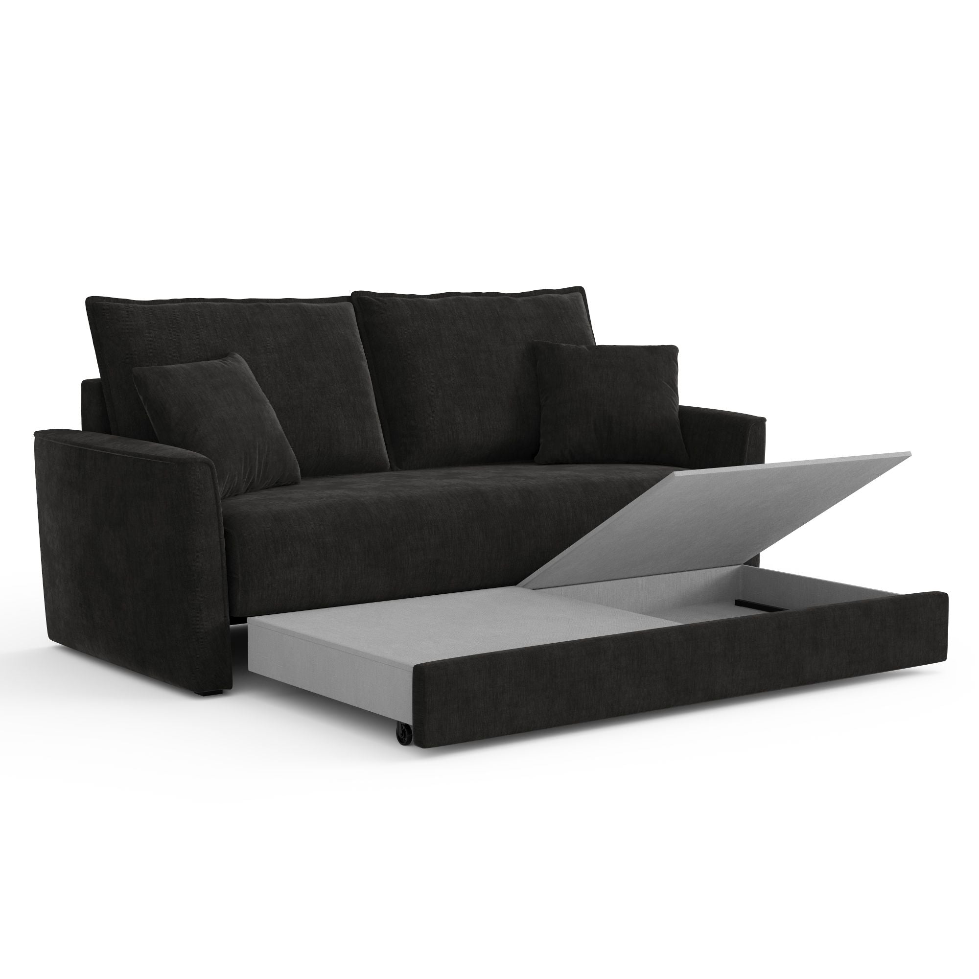 3-zits slaapbank in zacht aanvoelende zwarte inslagstof 180cm