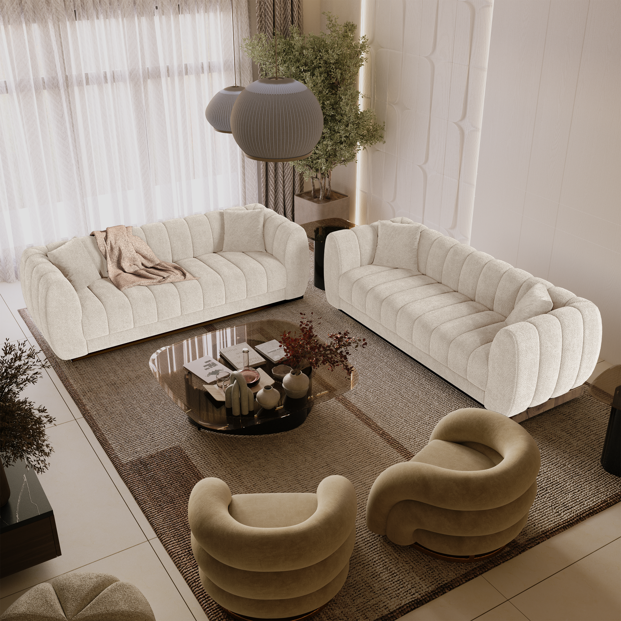 3-zitsbank in crème fluweel 229cm