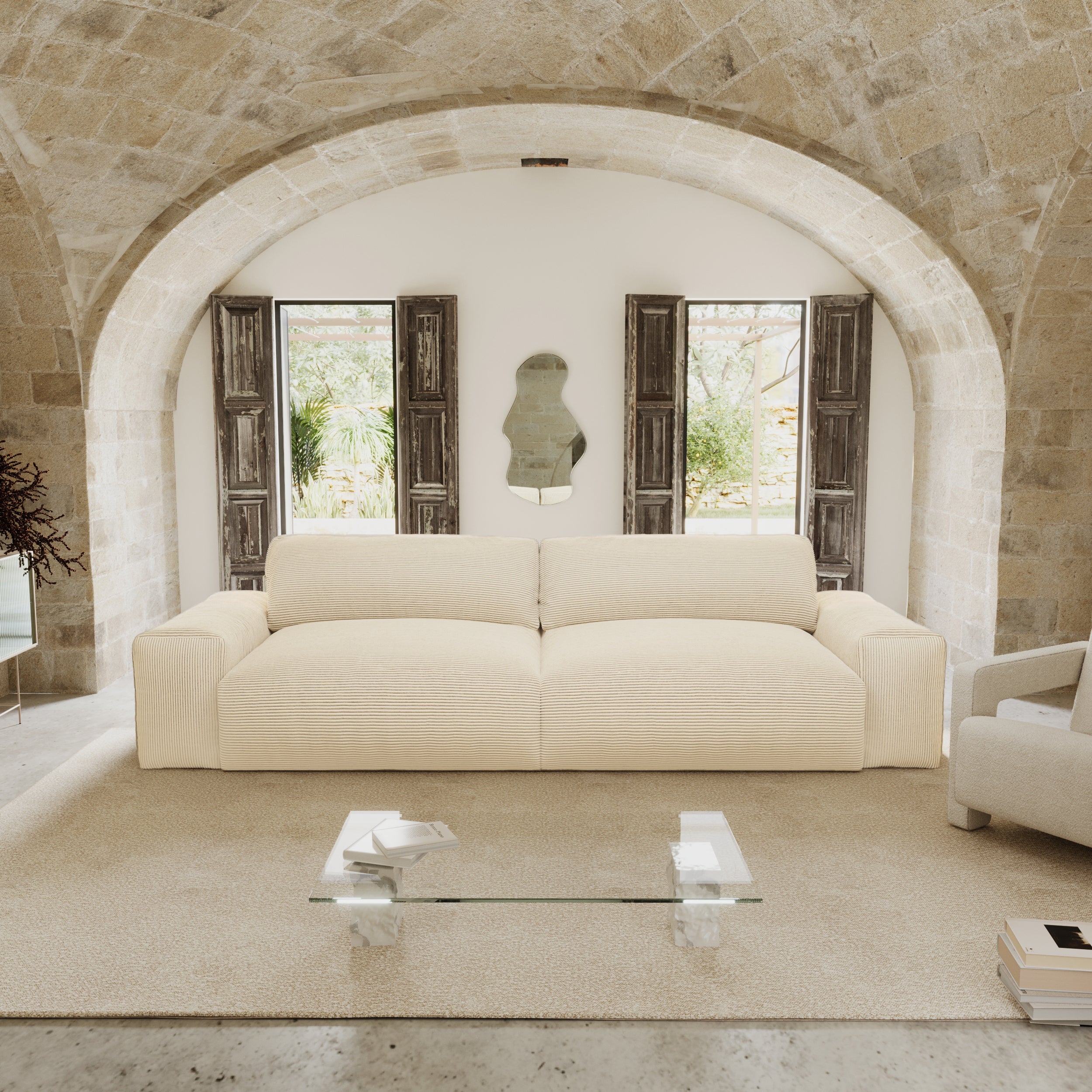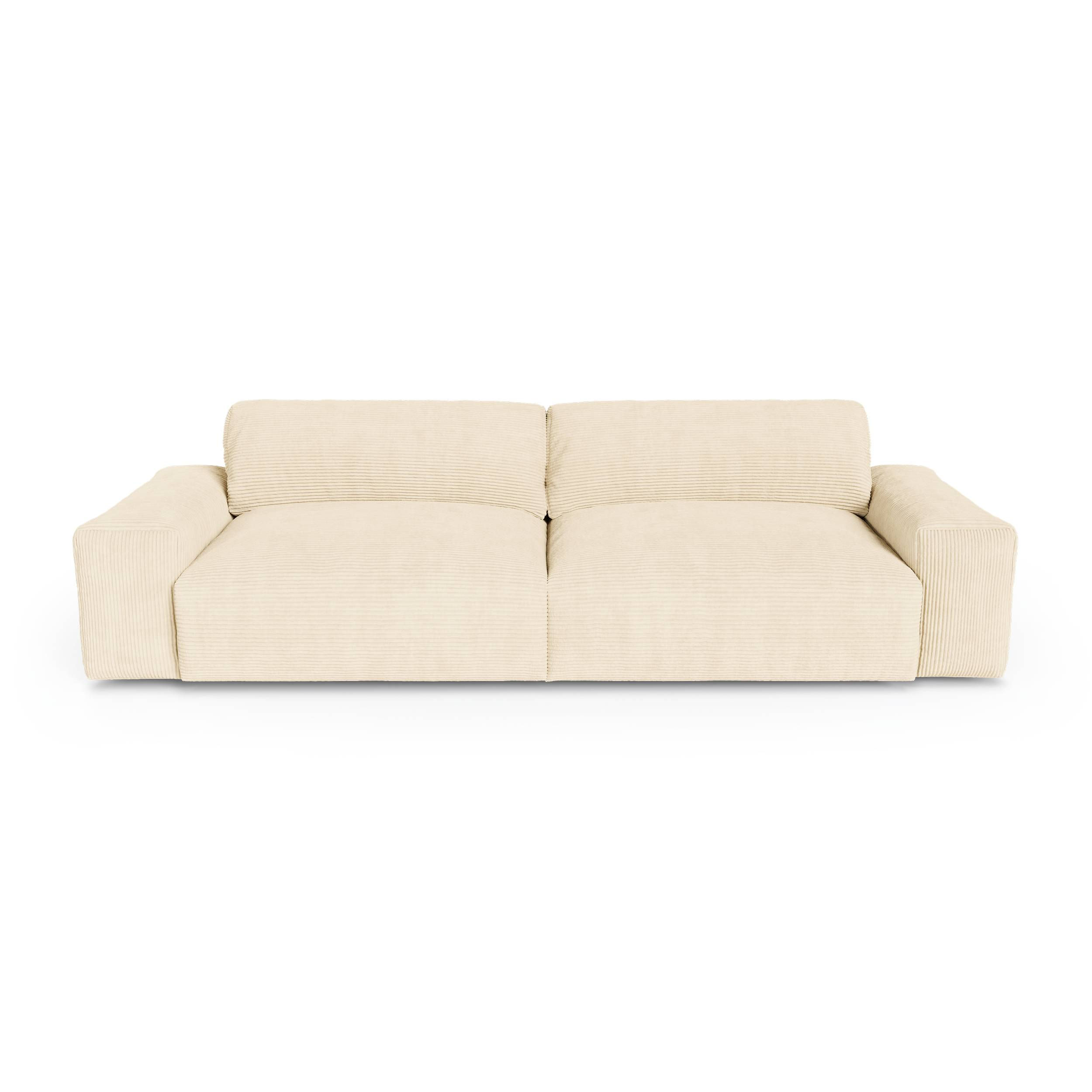 3-zitsbank in zacht aanvoelend crèmekleurig corduroy, 220 cm