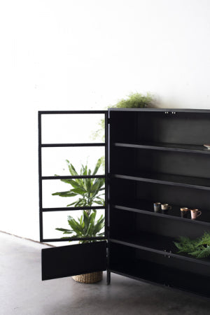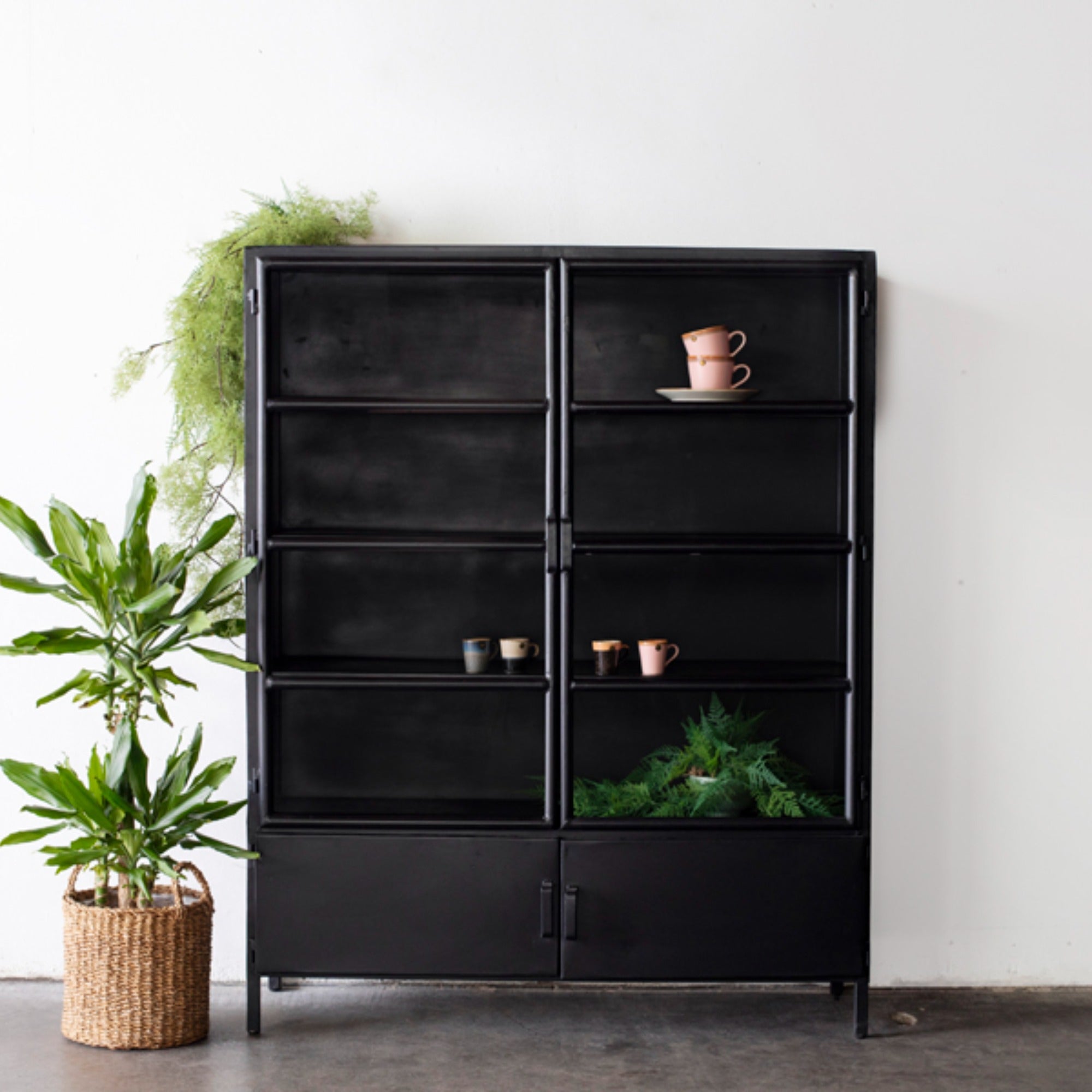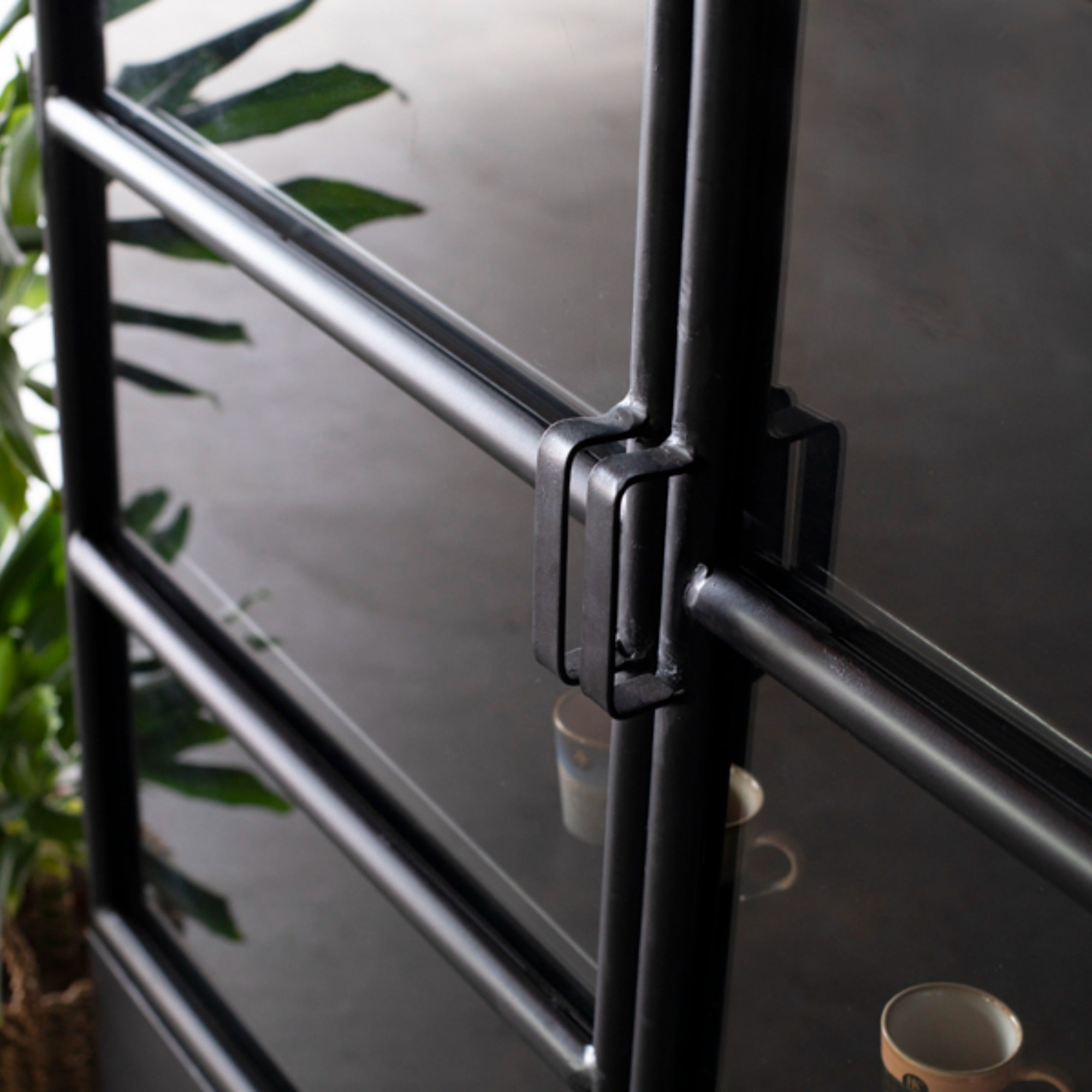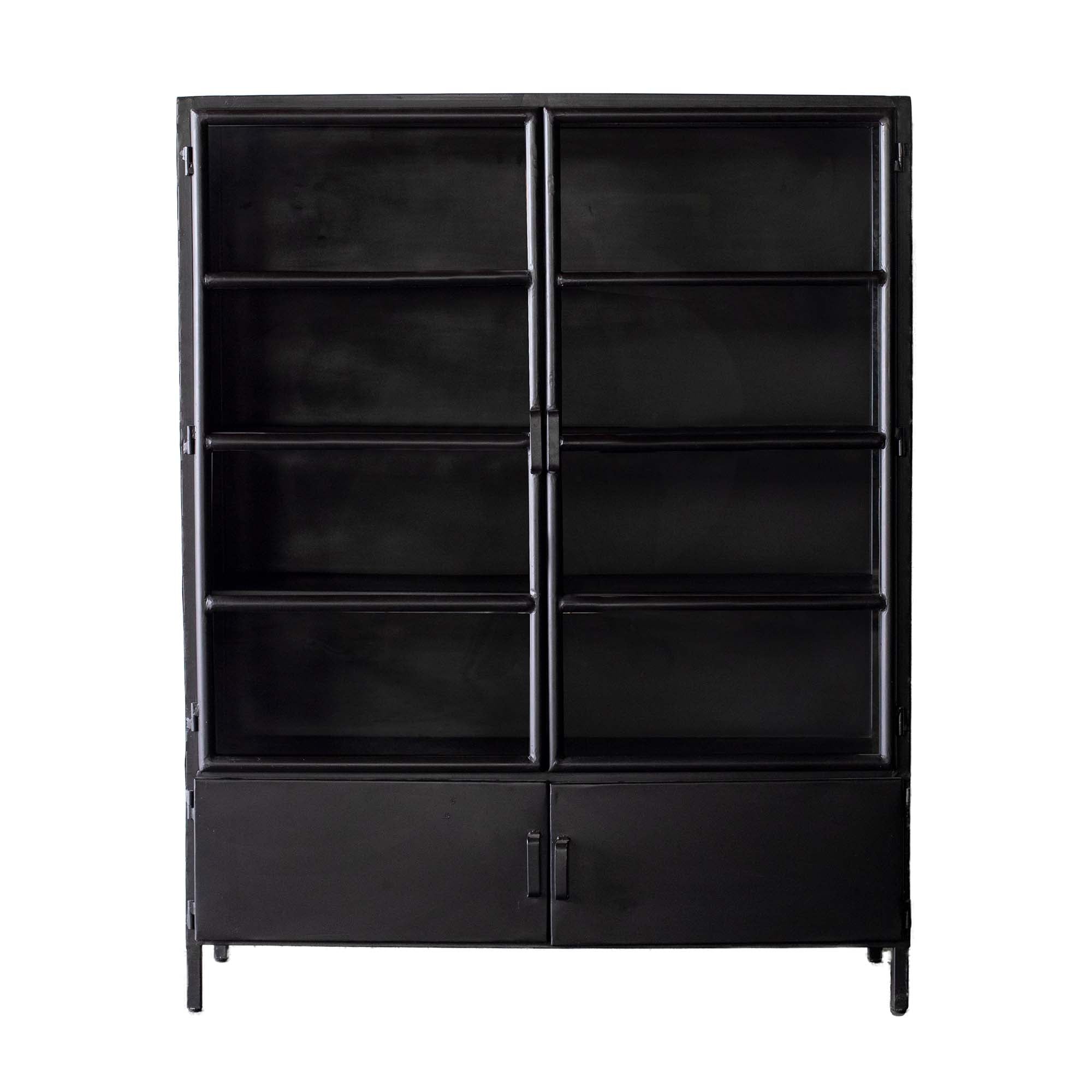 4-Deurs Vitrinekast - Zwart Metaal - 123x40x155cm - Davy - Giga Meubel