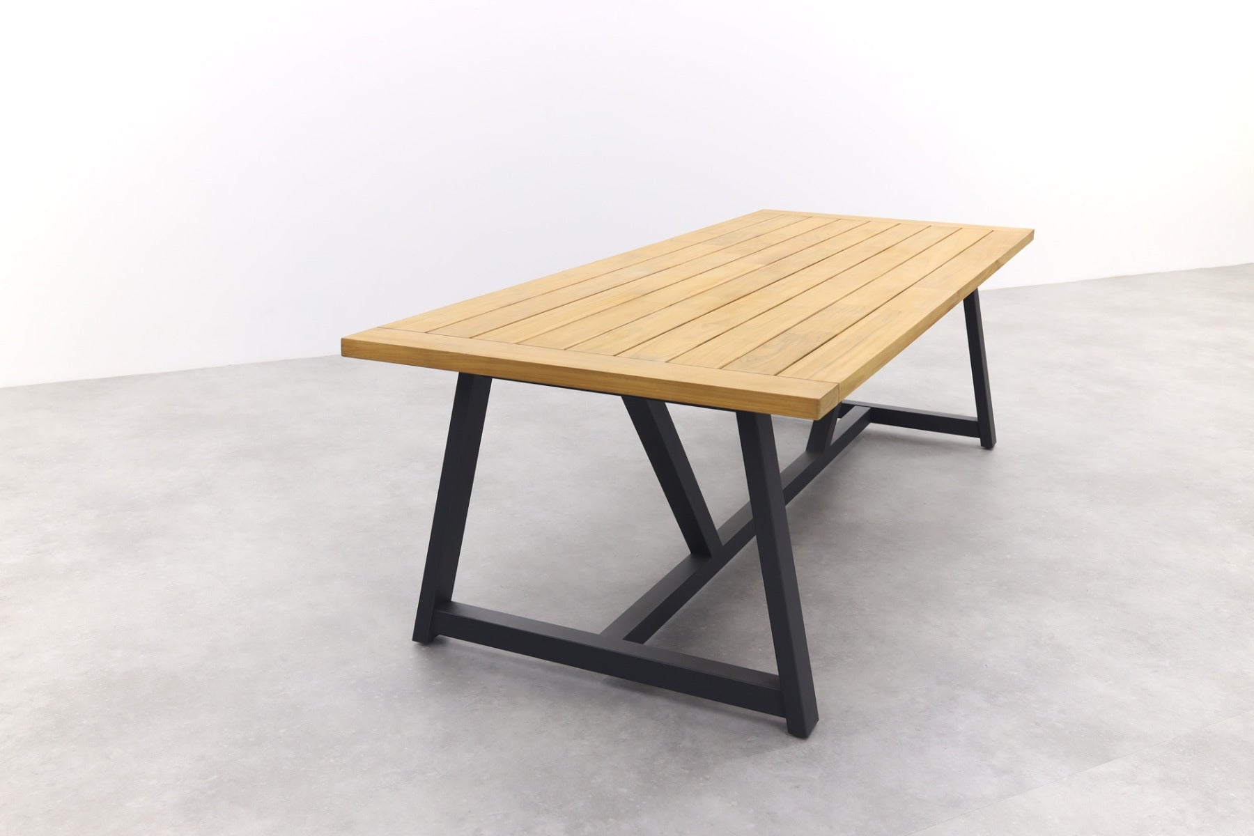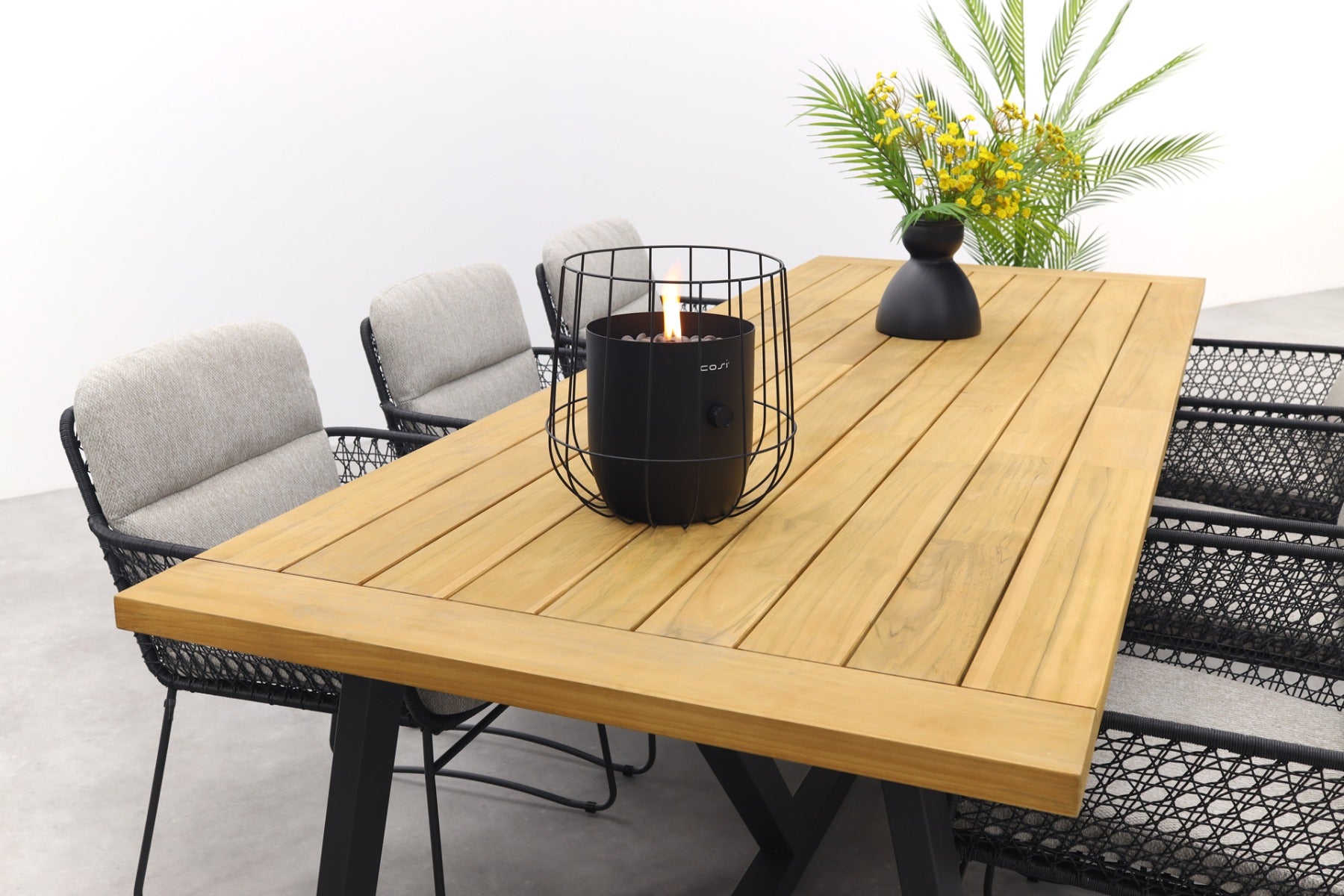 De industriële Noah tuintafel van Taste combineert een prachtig teakhouten tafelblad met een uniek RVS frame. De unieke vorm van het frame zorgt echt voor een eyecatcher in jouw buitenruimte. Roestvrij staal (RVS) is een duurzaam materiaal dat resistent is tegen roest, terwijl teakhout van nature goed bestand is tegen diverse weersomstandigheden. Desondanks zal teakhout na verloop van tijd van kleur veranderen door blootstelling aan de elementen, wat een normaal proces is voor dit type hout. Als je dit wilt voorkomen, kun je het hout behandelen met een teak protector. Het is echter niet nodig om teakhout af te dekken, omdat dit juist ongewenste vlekken kan veroorzaken.