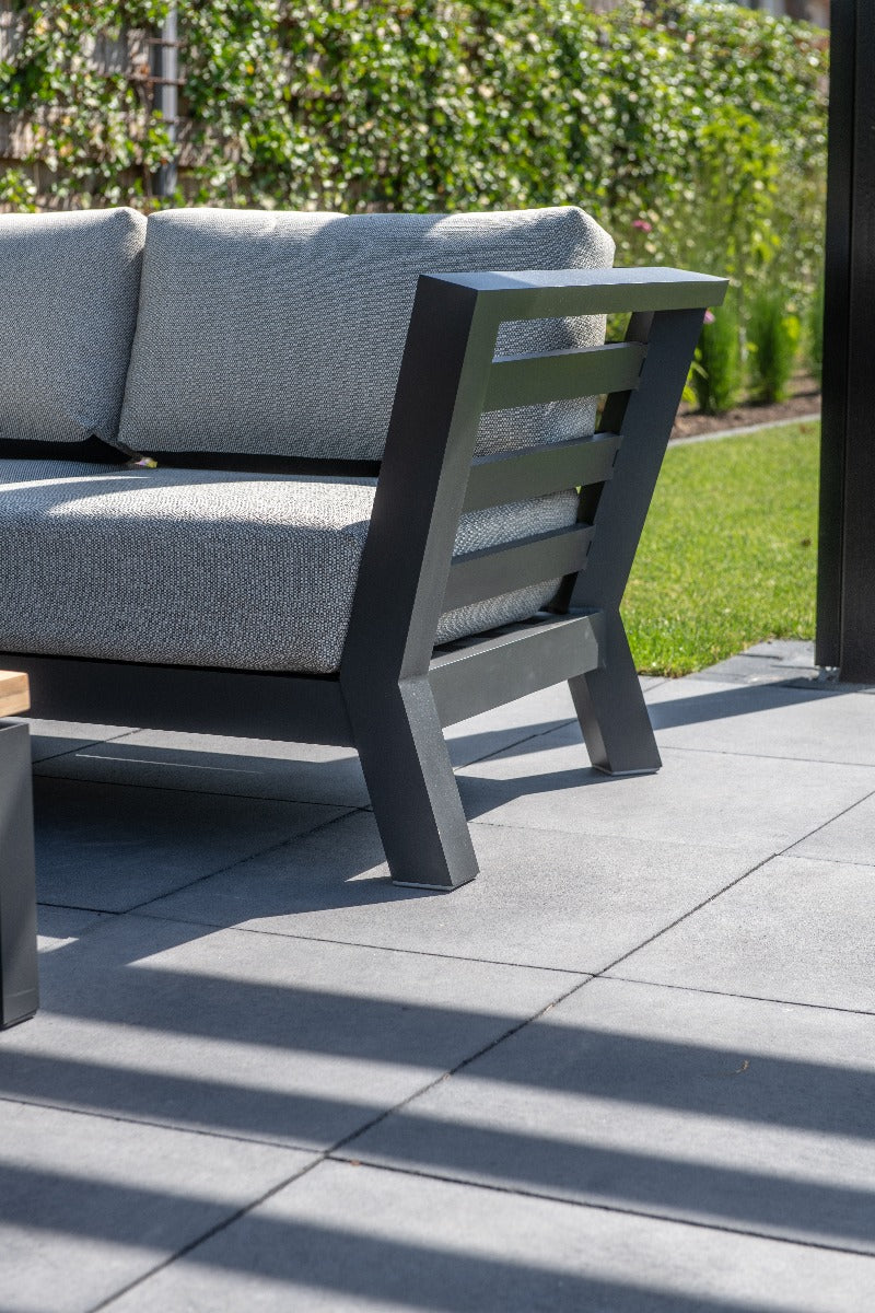 De 4 Seasons Meteoro loungeset 3-delig bestaat uit een linkse 2-zits bank, een rechtse 2-zits bank en een hoekelement. Deze elementen zijn voorzien van comfortabele loungekussens van ± 20 cm. De kussens hebben een lichtgrijze kleur en matchen perfect bij het antraciet kleurige frame. Hierdoor ontstaat er een stijlvolle combinatie die je terras een hippe uitstraling geeft. Het is ook handig om de Meteoro loungeset uit te breiden met een loungetafel. Wij hebben diverse soorten loungetafels in ons assortiment die perfect matchen bij de Meteoro loungeset.
