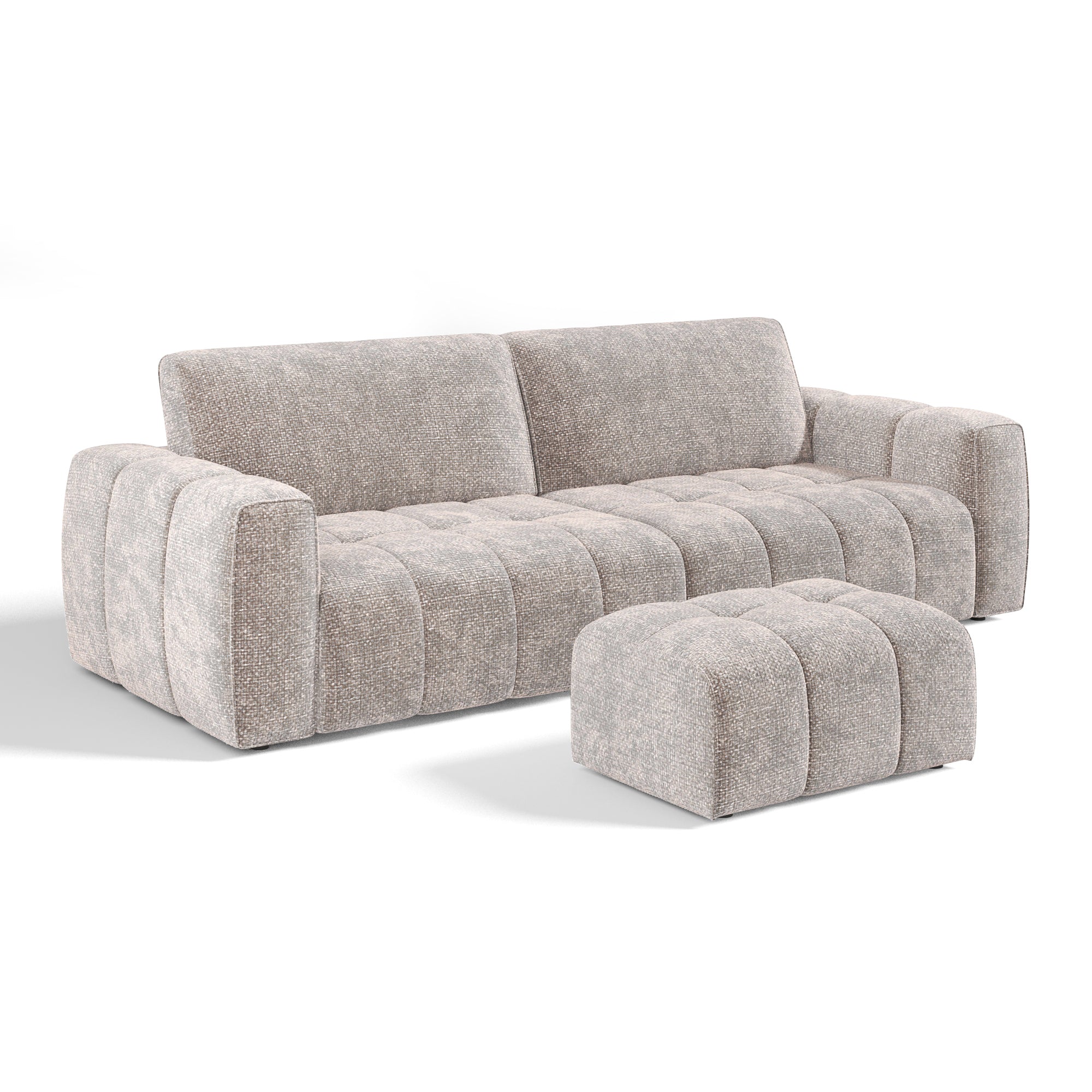 4-zits bankstel en poef in beige chenille fluweel