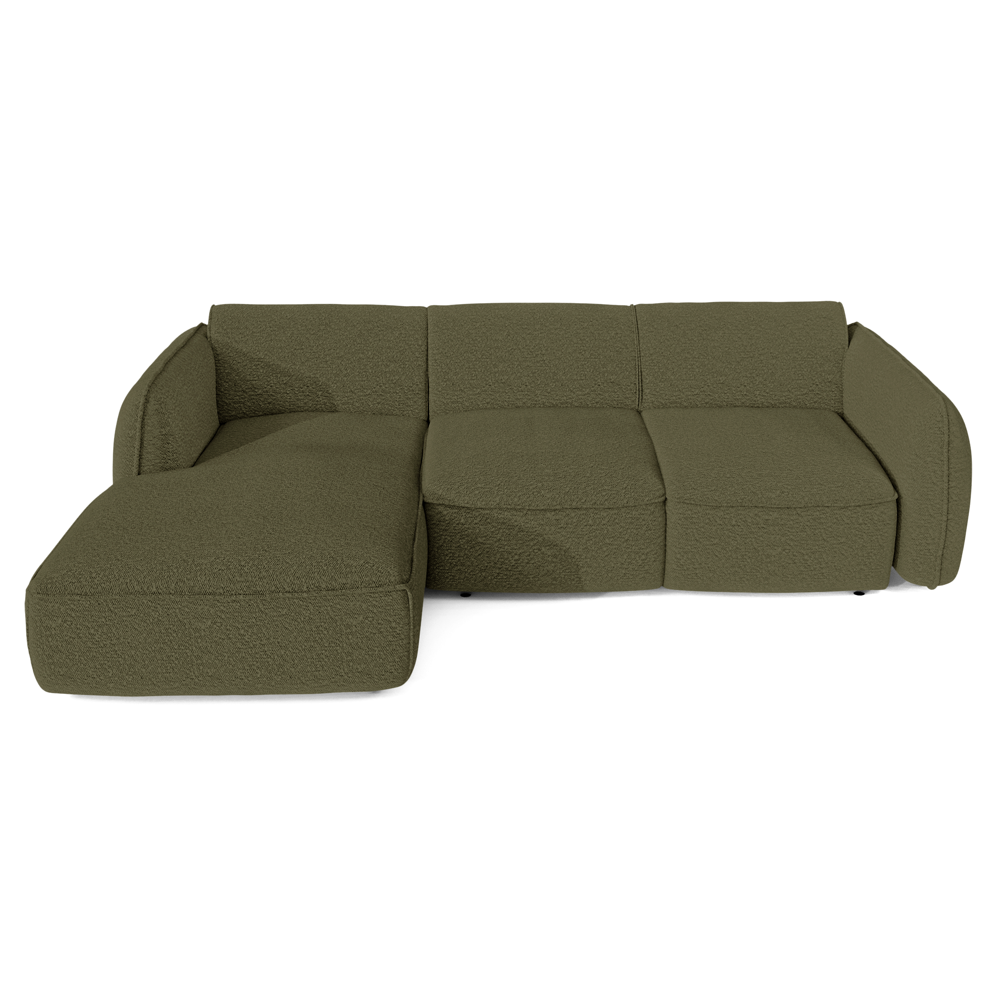 4-zits linker hoekbank in olijfgroene bouclette stof