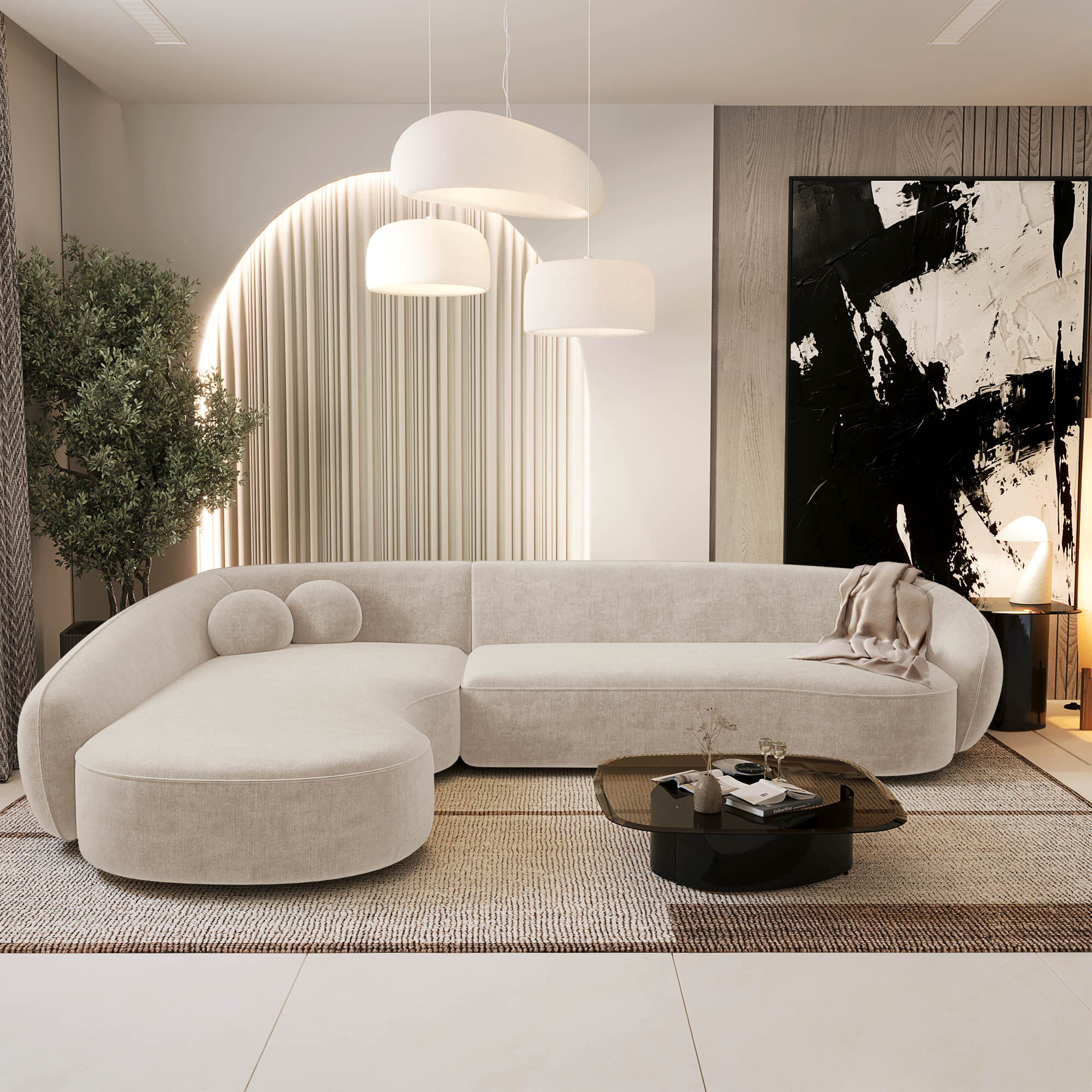 4-zits linkerhoekbank in zacht aanvoelende crèmekleurige inslagstof